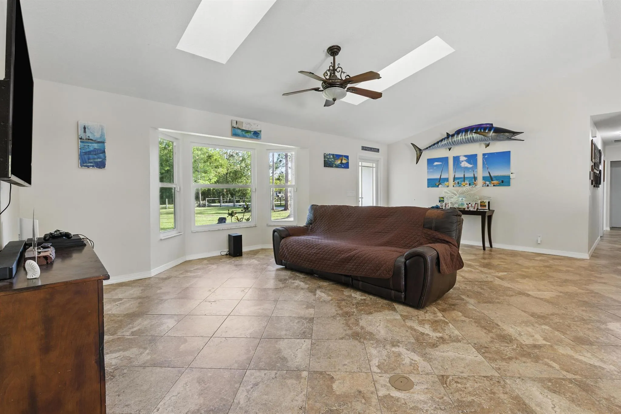 NO HOA , paved road! There is no wasted space in this Jupiter Farms home! The home features a split bedroom floorplan with an open concept living area, vaulted ceilings and nice natural light, open kitchen with stainless steel appliances, and oversized laundry room (currently being used as a 4th bedroom). Outside, you will find a freeform pool (Diamond Brite) and 1.25 acres of fully fenced yard. Previous owners used backyard for horses so there is a pole barn, storage shed, and room for 2 paddocks. Home has been upgraded with impact windows, skylights, and doors, and has a newer HVAC and roof (installed in the last 5-6 years). Fitted with a generator hookup that easily runs the A/C, pool and water pump, refrigerator, and more in the event of an electrical outage. |