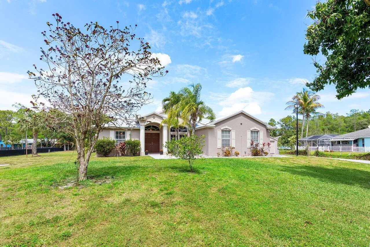 Exquisite Jupiter Farms Retreat - A Rare Find Nestled on 1.2 acres in the peaceful Jupiter Farms community, this beautifully updated 3-bedroom, 2-bathroom, 2,035 sqft home offers the perfect blend of modern comfort and privacy. The spacious split floor plan is bright and inviting, featuring fresh interior paint (2020), updated light fixtures, and ceiling fans throughout. The spacious kitchen boasts updated appliances, ideal for creating delicious meals in a sleek, functional space. The master suite includes two walk-in closets, offering abundant storage, as well as an ensuite bathroom for a private retreat. An additional linen closet in the bathroom adds even more storage convenience. Step outside to your own private sanctuary. |