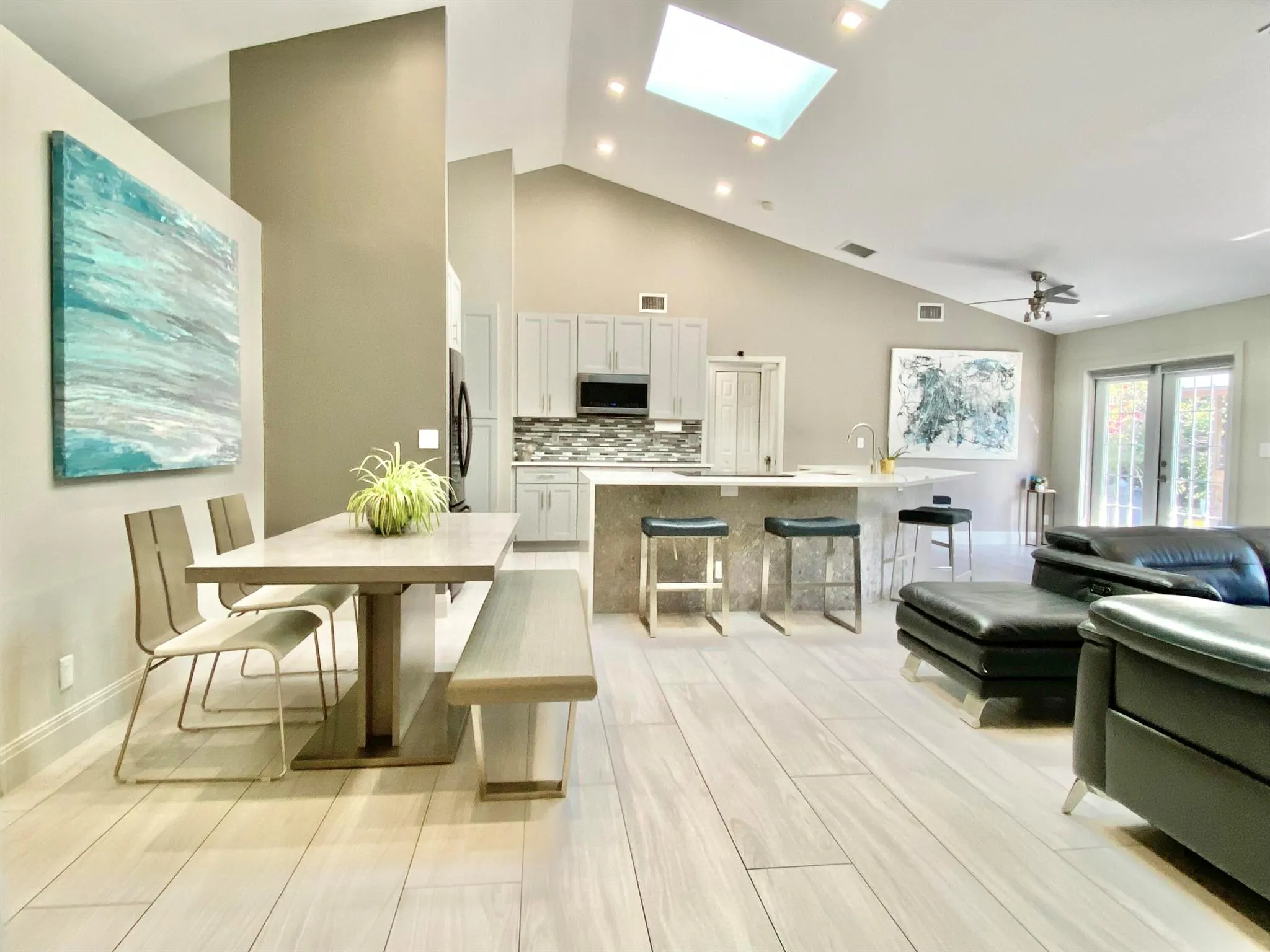 Updated and move in ready Concrete Block (CBS) 3 Bedroom 2 Bathroom Plus Den, 2 Car Garage home with 2022 METAL Standing Seam Roof PLUS a 3 Bay Pole Barn with Enclosed Shop and Porch on 1.25 acres. This beautifully landscaped fenced corner lot property has two separate driveways, numerous fruit trees, a covered Outdoor Kitchen with stone pizza oven, grill and food prep area. The open Kitchen and Living area provides a light and natural ambiance with vaulted ceilings, Impact glass skylights & Continuous porcelain plank tile throughout the entire home. Must see to appreciate all this home has to offer. No HOA, minutes from Preserves, Shopping, Restaurants, Beaches, and A+ Schools. |