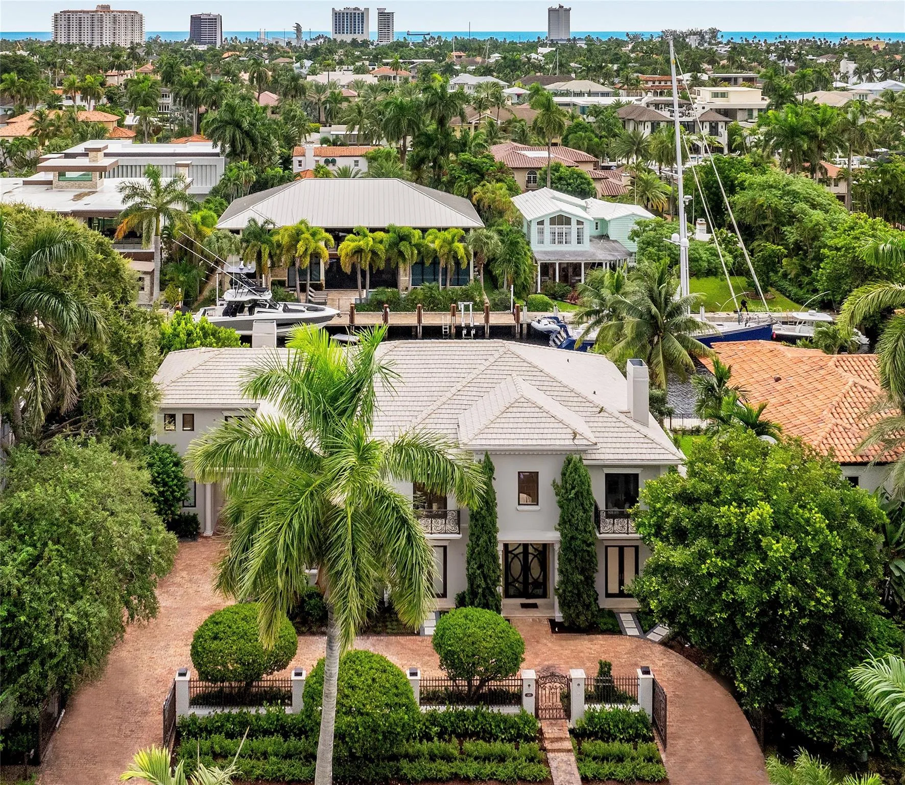 Discover this exquisite Georgian-inspired estate in prestigious Las Olas Isles, where modern sophistication meets timeless charm. Fully gated for privacy & security, set amid lush, resort-style landscaping on 100' of prime WF w/direct intracoastal access. Custom chandeliers & marble floors flow throughout, w/warm wood & Cristallo accents. The chef’s kitchen features a custom brass range hood & oversized island. A 3D backlit feature wall in the great room perfectly blends modern aesthetics w/the home’s Georgian charm. The opulent primary suite includes a fireplace, sitting area, separate his/her bathrooms & walk-in closets. Versatile office can be a 6th bedroom. Expansive outdoor entertaining spaces w/pool & guest house, perfect for coastal breezes. Just a short walk to Las Olas & beach! |