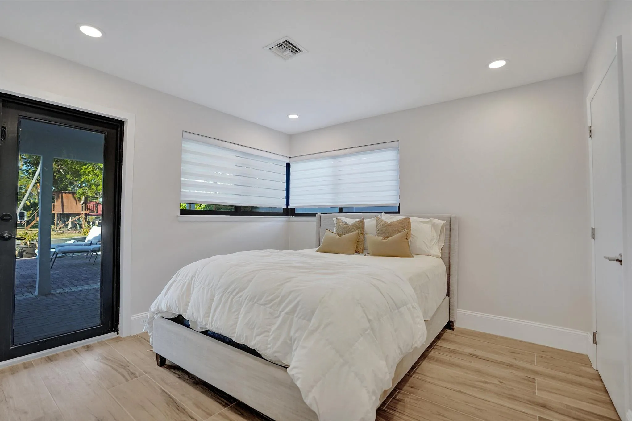 This 3-bedroom, 2-bath, home offers panoramic water views and an entertainer's dream layout. The updated kitchen boasts quartz countertops, custom cabinets, a pot filler, dual-temperature wine fridge, and smart double oven. The primary suite features a spa-like bath with a soaker tub, marble shower, and custom walk-in closet. Recent upgrades include a new roof, hurricane-impact windows and doors (2023), modern HVAC and ductwork (2022), and updated baths (2024). Elegant finishes, including wood-look tile floors and designer lighting with vaulted ceilings. Outside, relax by the private pool or enjoy direct access to the intracoastal waterways. |