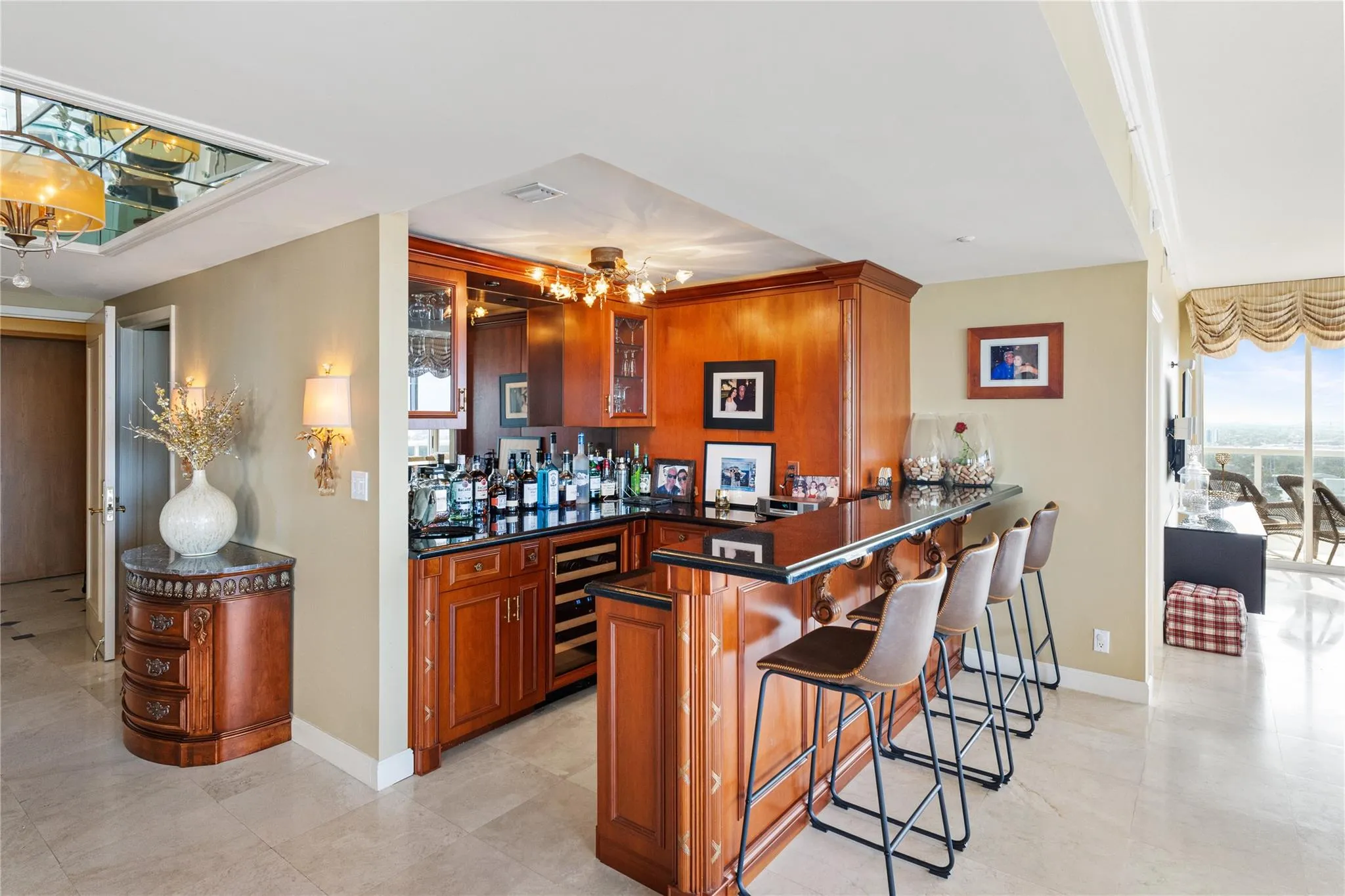 DOUBLE CORNER with PANORAMIC VIEWS of ocean, city & waterway. Two huge wrap-around terraces, Open kitchen, built in bar, marble floors & private elevator. NOTE that 3rd bedroom is open as a den, a wall can easily be