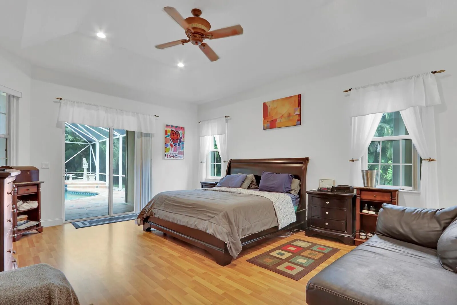 House with separate guest house in prime PBCE location. The 1.2 acre lot is landscaped for privacy. Large screened patio and kidney shaped pool. The main house features 3 bedrooms plus a den with volume ceilings. The attached guest house has a spacious living area, kitchen plus 2 bedrooms and a bath. Double French glass entry doors lead to the light and bright open floor plan. Large circular driveway. Whole house generator and complete accordion shutters. |