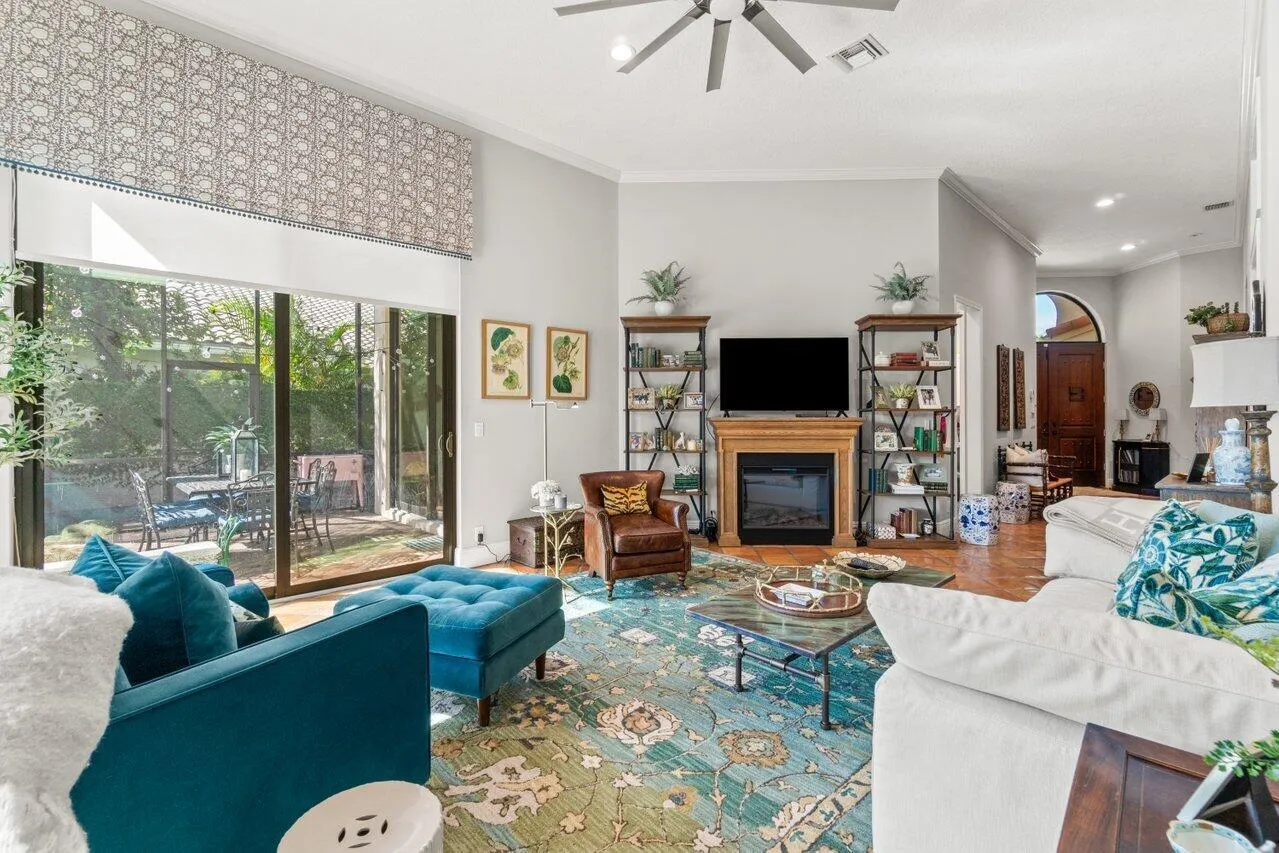 This charming 3 bedroom, 3 bathroom home is nestled in the coveted Equestrian Club Estates neighborhood, just a short walk or golf cart ride to the Wellington International Equestrian Center. As you enter, you're greeted by an open floor plan featuring large windows that fill the space with natural light. All living areas connect seamlessly with the incredible outdoor areas, creating an inviting space for entertaining guests or relaxing with family. The master suite is a true oasis, offering a spacious bedroom and spa like bath with steam shower. The additional bedrooms with en suite baths are generously sized and offer plenty of room for family and guests. Enjoy the beautiful sunsets poolside, all overlooking the water and fenced backyard featuring newly planted fruit trees. |
