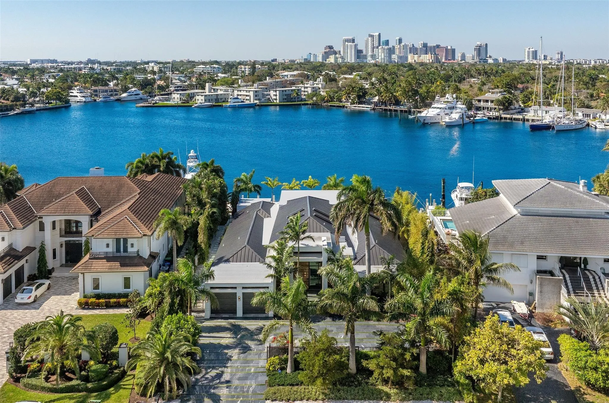 Enjoy Effortless Luxury Living on the Middle River in This Turnkey Furnished Modern Estate located in the Gated/Patrolled Community of Sunrise Intracoastal. Rebuilt in July 2023, this Fully Gated, 5Bed/5.5Bath Single-Story Smart Home has 5,696SF of Living Space on a Sprawling 15,300SF lot & a Gorgeous 2,300SF Coral Stone Dock for Multiple Boats. Each Bedroom is Well Appointed with Spa-Like En-Suite Bathrooms for Comfort & Privacy of Residents & Guests Alike. Interior Features include 14ft Ceilings, Elegant Walnut Millwork, Marble/Wood Flooring & Quartzite Countertops, Natural Gas Generator, 4-Car Garage with 60amp Electric Car Charger, & Automatic Blinds. Relax and Entertain Outdoors Wide Open Water Views, Covered Lanai, Summer Kitchen, Multiple Sitting Areas, & Heated Chemical-Free Pool. |