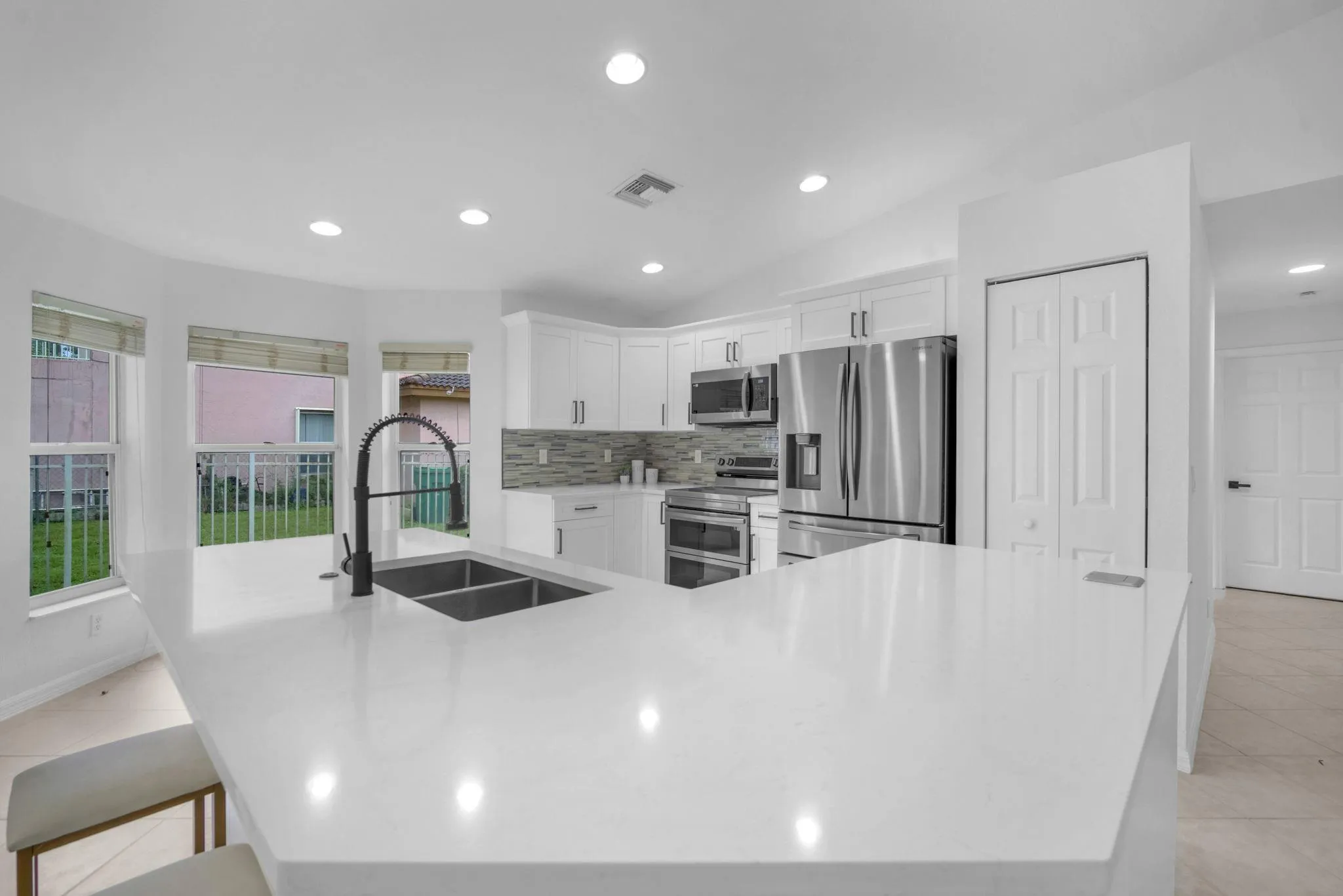 newly renovated home boasts modern sophistication, featuring stunning quartz countertops, chic white shaker