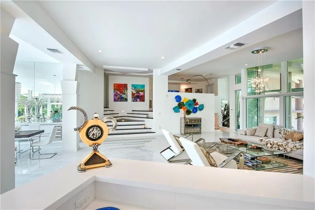 A ONE OF A KIND TWO LEVEL FRENCH DESIGNED ALL GLASS HOME WITH MAGNIFIECENT WATER AND TROPICAL VIEWS - A TRUE CELEBRITY HOME ON DEEP WATER WITH 110 FEET OF DOCKAGE FOR A 90 FOOT YACHT WITH NO FIXED BRIDGES. A EXPANSIVE OPEN FLOOR PLAN WITH DINING ROOM LIVI NG ROOM AND VAULTED CEILINGS. A PANARAMIC TROPICAL VIEW AND SETTING FROM LIVING ROOM MASTER BEDORRM AND GUEST BEDROOMS.