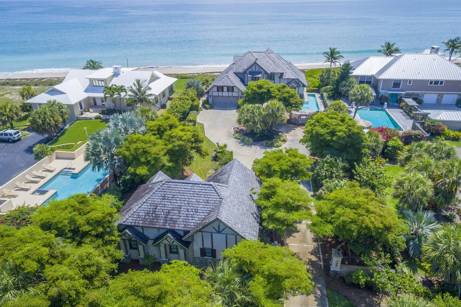 Fabulous Ocean Front Vacation Home. SHORT Term Available or monthly! Stunning views of the Ocean from every room. Unique & loaded with Character. Main Home 2 Master bedrooms & 3 Baths, Guest house with kitchen & separate bedroom. Wood beam ceilings, hardwood floor. Full-service Kitchen with Wet bar. Enjoy your view at your breakfast nook. Spacious living room overlooking the Ocean. You will wake up with the Sunrise & have your morning coffee on the balcony--heated Lap pool. Homes are equipped with full service. Just bring your Suitcase. This could be your STORY BOOK VACATION, as you will make memories. Centrally located, close to shops & Amenities of Vero Beach. |