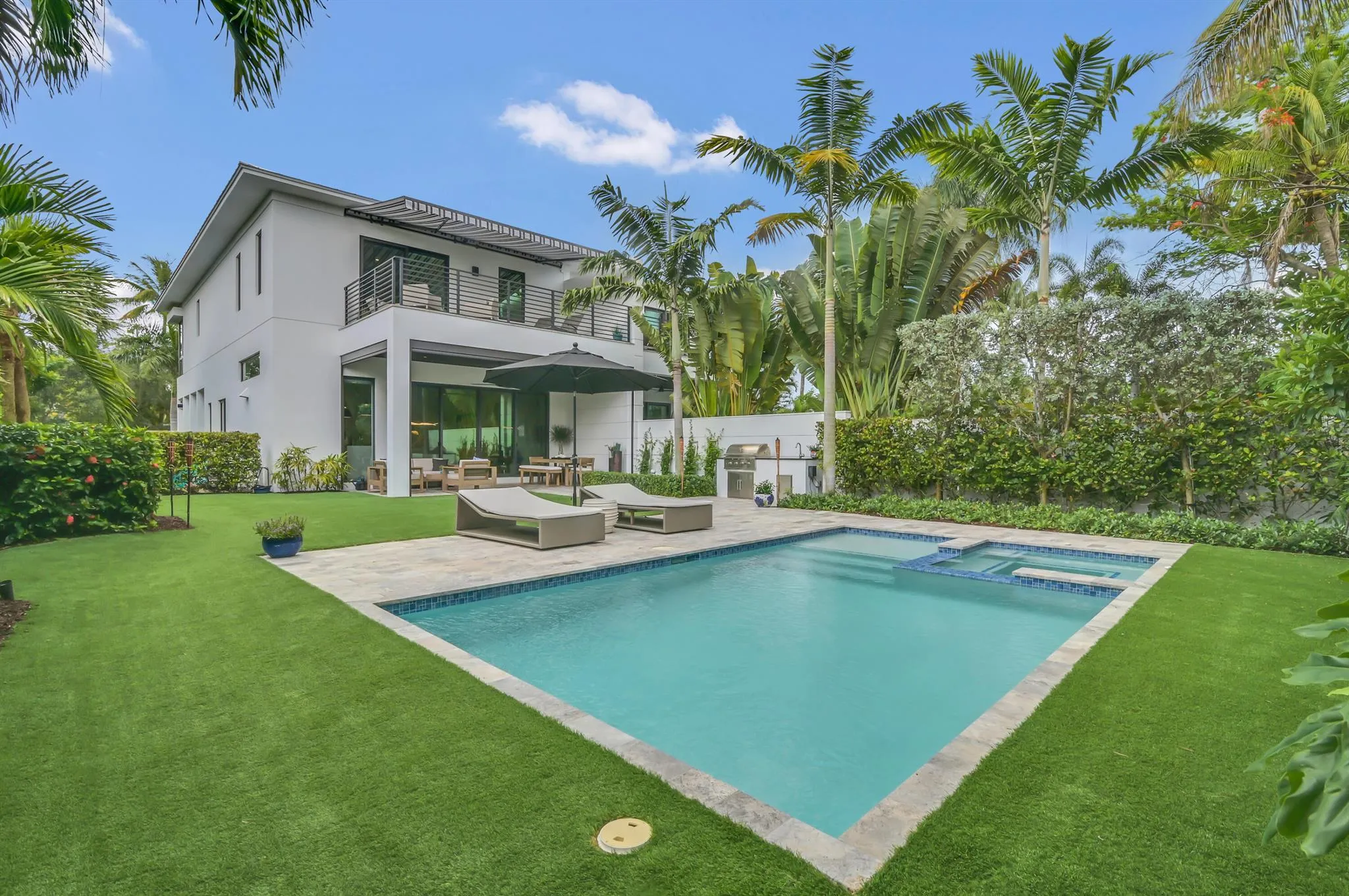 This East Delray Beach home is situated less than a mile from the closest beach access point and approximately 1.5 miles to the heart of the Delray Beach restaurants on Atlantic Avenue and in Pineapple Grove. This 2,500 sq ft contemporary home was built in 2018 and has 3 bedrooms (one king andtwo queen mattresses) and 3.5 bathrooms. Each bedroom has an en suite bathroom. Wood floors throughout and luxurious tile in the upstairs bathrooms. The fullystocked kitchen is large and open with Thermador appliances and quartz countertops. There are wall-mounted flat screen TVs in each bedroom and thedownstairs family room. The home has a Sonos sound system in the family room/kitchen, master bedroom/bathroom, patio, and a portable speaker to use by thepool or at the beach. |