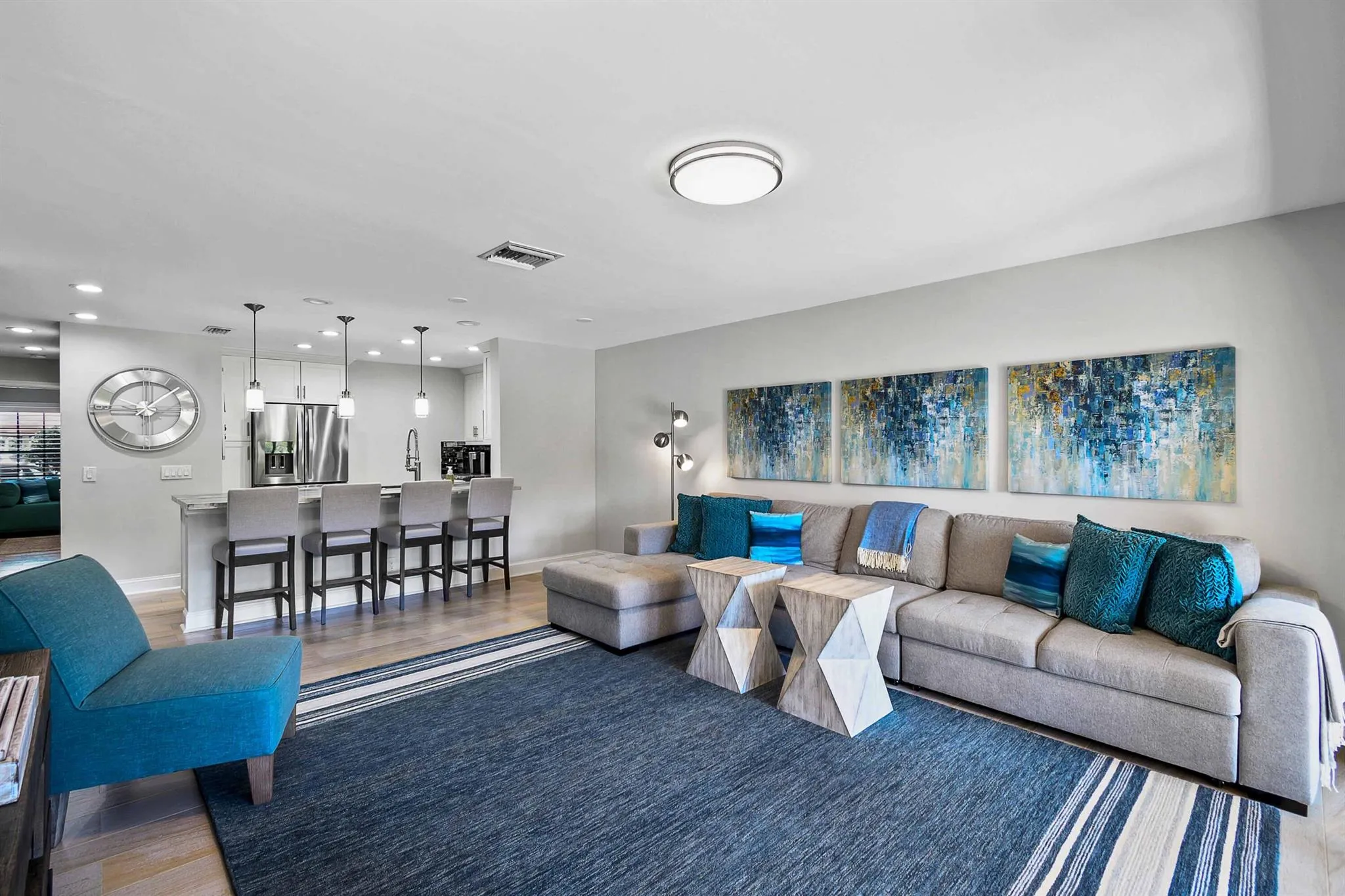 Welcome to 2300 Treasure Isle Drive, Unit A78! This beautifully updated 3-bedroom, 3-bathroom townhome offers 1,514 square feet of modern waterfront living in Palm Beach Gardens.As you enter, you'll be greeted by vaulted ceilings in the foyer and sleek tile floors on the main level. The contemporary kitchen comes equipped with stainless steel appliances, a spacious pantry, and chic plantation shutters. The open living and dining areas lead out to both covered and open patios, perfect for enjoying the stunning waterfront views.Upstairs, you'll find warm wood floors and roomy bedrooms. The primary suite features a private bathroom and ample closet space. Full impact windows throughout the home ensure safety and an abundance of natural light.This gated community is a haven |