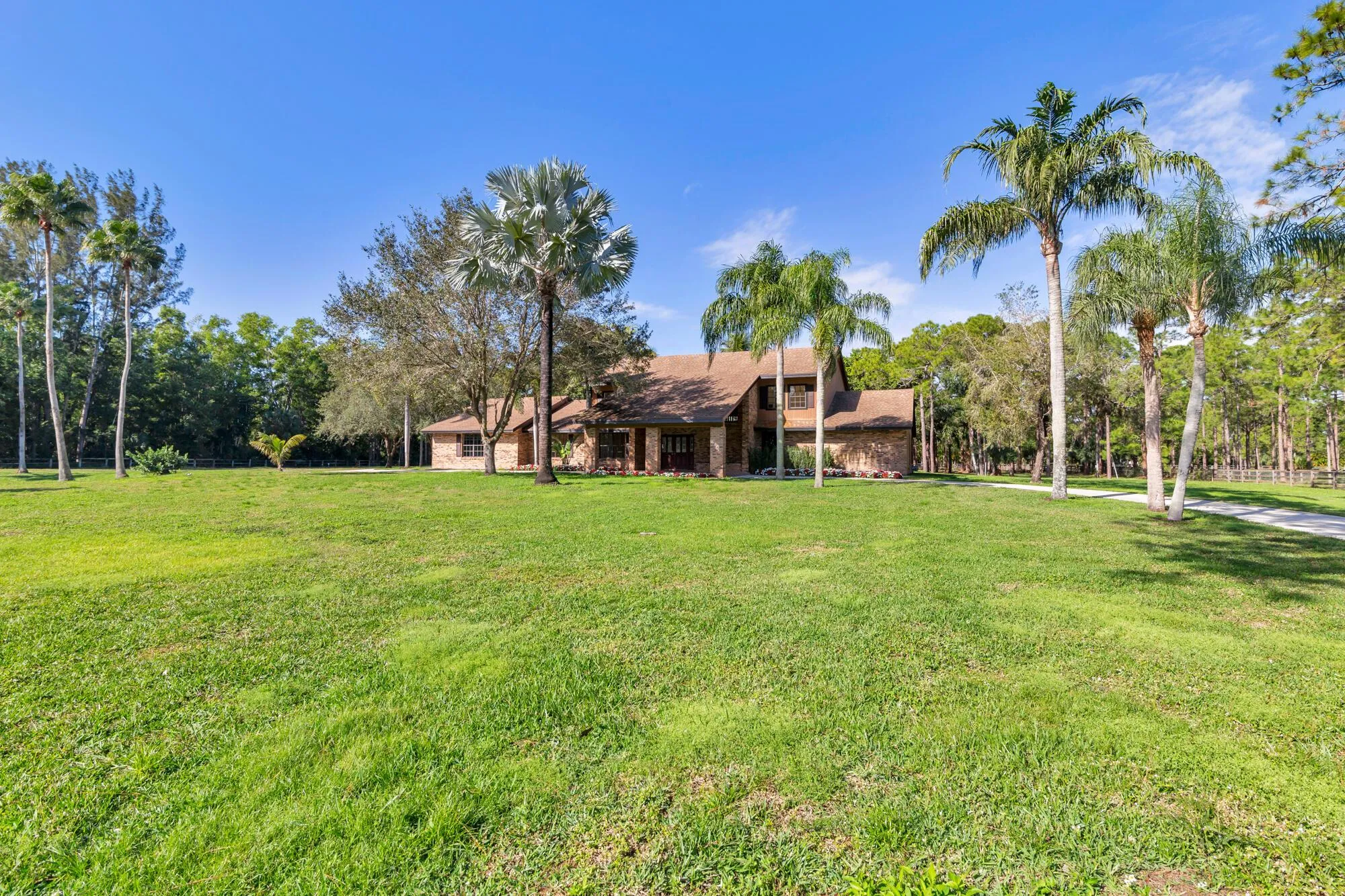All Sizes Approx. Equine Enthusiasts, Race Car Drivers, Pilots and Engineers look no further! This updated custom estate is situated on over 5 acres in the equestrian community of Caloosa, Minutes from PB International Raceway, North County Airport, Pratt & Whitney and more! At almost 4,000sf under air this bright and open floor plan boasts many upgrades. Enter the fully crossed fenced property through the secure main gate. Cement paved driveway with porta cochere. Surrounded by lushly landscaped front lawn, auto sprinklered from your private pond. As you enter the home you'll immediately appreciate the upgrades with the expansive, open concept living/dining that allows tons of light to pour in! Gorgeous French pattern marble tile in main parts of the home. *See Remarks* |