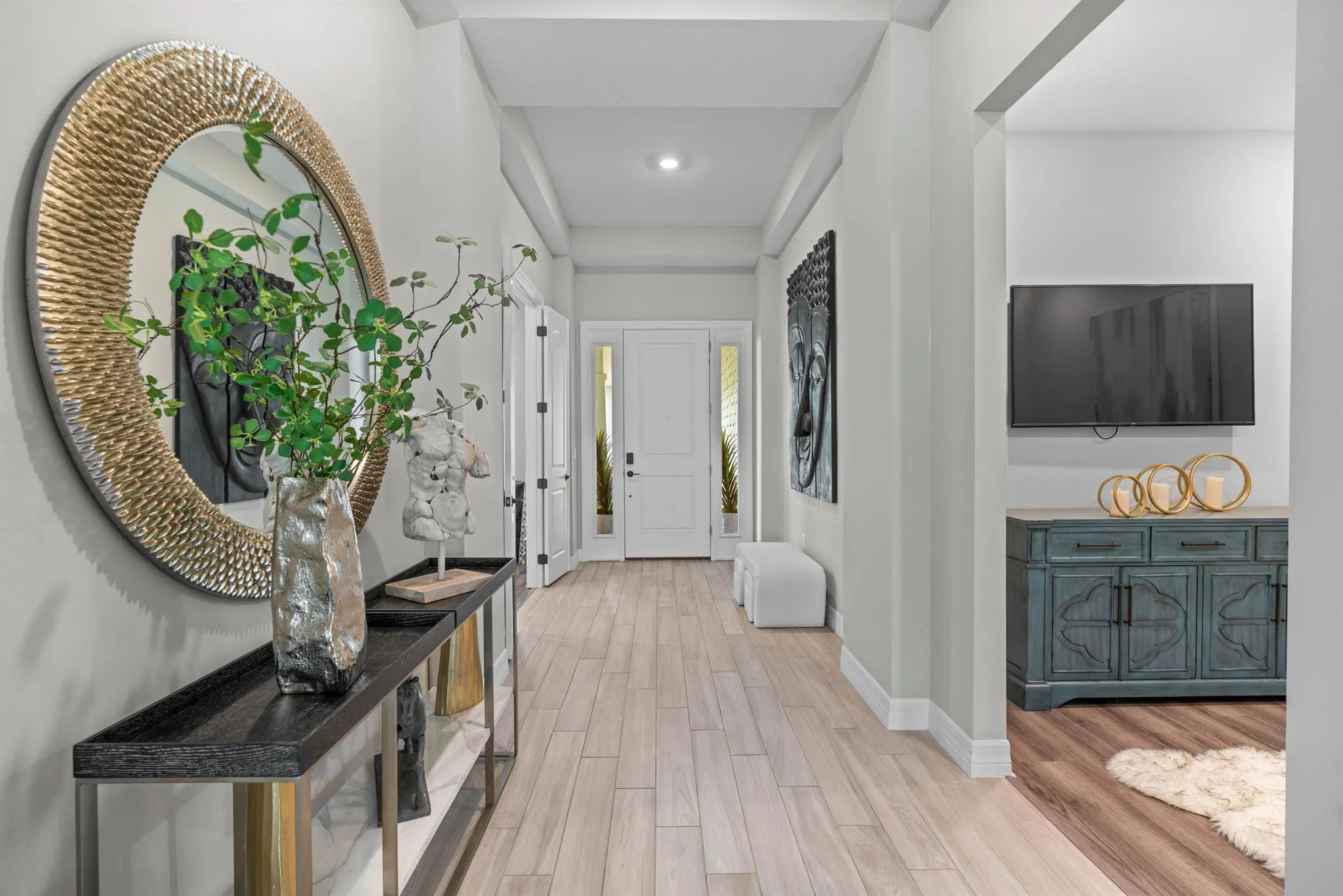 This impressive new construction home in Ancient Tree shows like a model! Upgrades galore. 4 bedrooms with open Florida living style. 5th rm has murphy bed system. Coffered ceilings. Living and dining rooms feature 'no corner doors' leading out to the spacious screened lanai. Perfect for entertaining! Chef's kitchen features Aristokraft cabinetry, spacious pantry with custom built ins, gas cooktop, huge island with kitchen seating, and high end SS appliances. Expansive primary bedroom features two elaborate walk-in closets. Split bedroom floorplan allowing privacy for all. This home is not to be missed! Two Tesla charging stataions in the garage. Sandhill Crane golf course is adjacent to the home for golf and dining...a great benefit without joining a Club membership! |