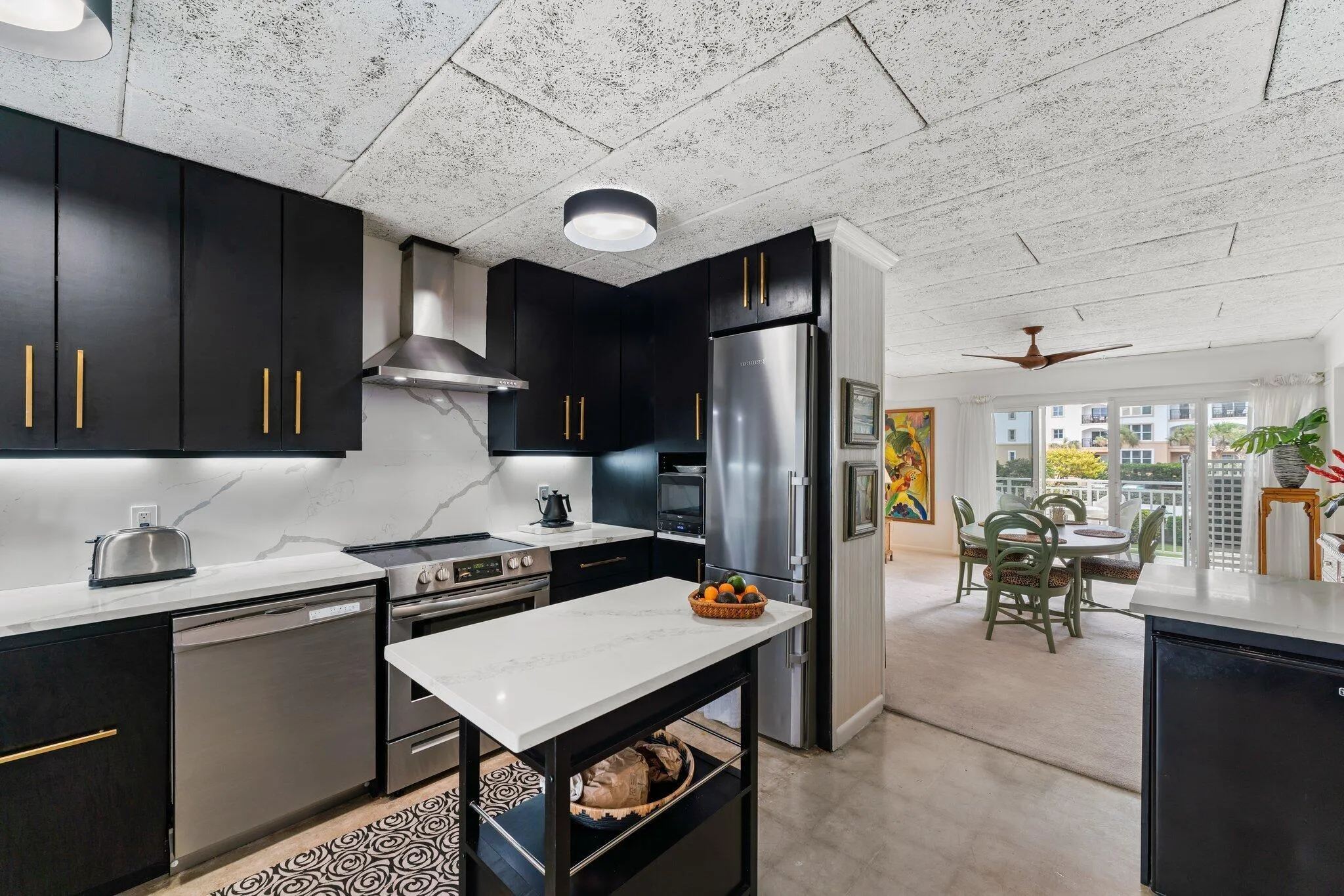 Enjoy the island life in this oceanfront apartment. This second floor residence offers beautiful updates including polished concrete floors in the kitchen, new dark wood cabinets with brass handles, quartz countertops, new appliances, new ceiling fans and light fixtures, crown molding and impact widows throughout. Residents can enjoy private beach access, heated pool and large garden area. A short walk to beautiful Palm Beach inlet, restaurants, Sailfish Marina and the Ocean Walk Mall. An ideal home to enjoy the year-round paradise that is Singer Island and the Palm Beaches. This apartment was combined to the next door unit and has currently no washer & dryer. Can easily be installed. Unit 209 next door is also for sale and can be combined to a 3 bedroom unit.