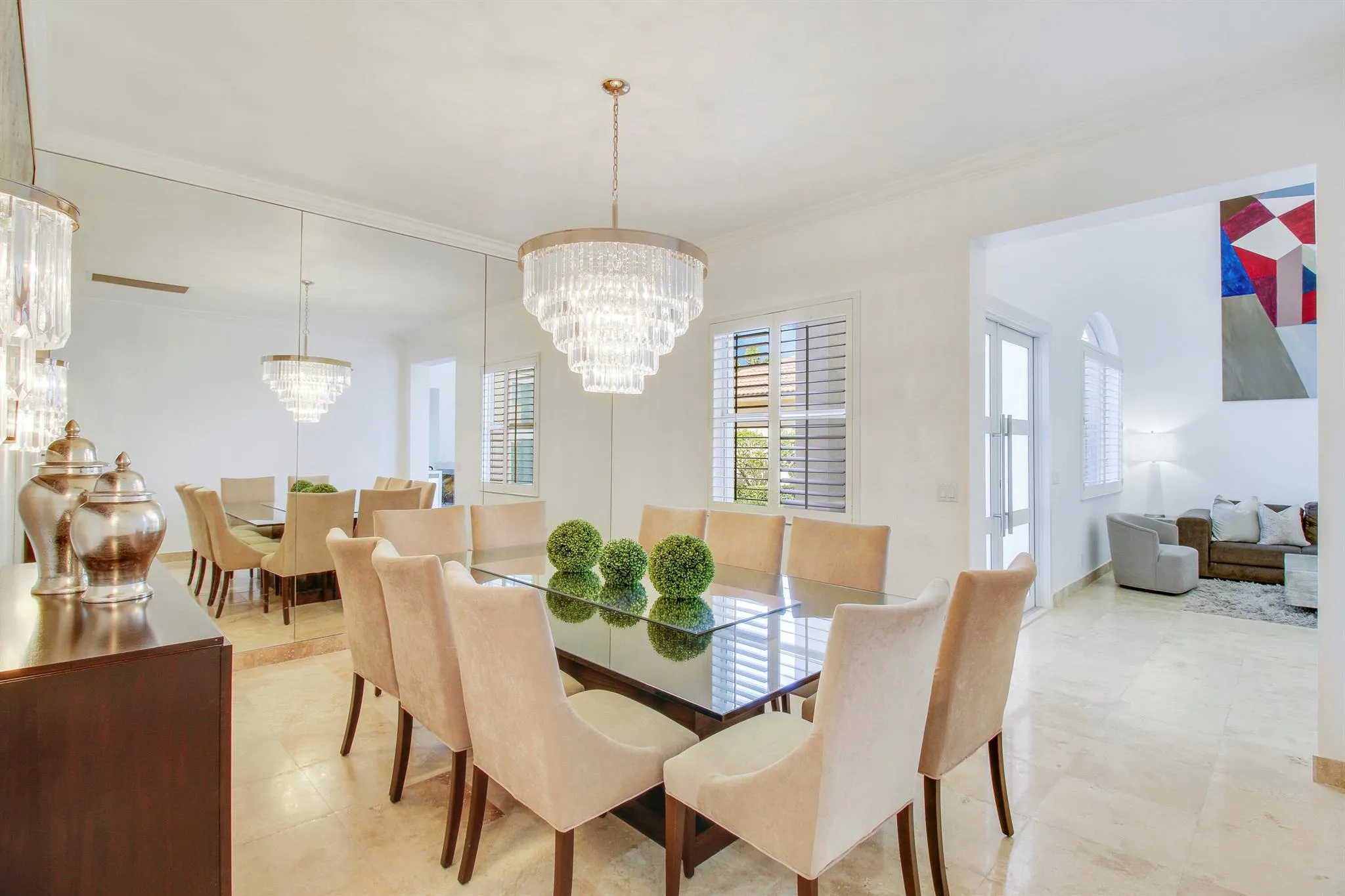 Explore this recently renovated 5-bedroom, 3-bathroom home in the sought-after Mirabella Community, offering picturesque water views. Enjoy the contemporary design with upgraded features throughout including a beautiful and modern glass staircase. The open layout seamlessly connects indoor and outdoor spaces, showcasing new travertine marble floors. Experience peace of mind and energy efficiency with impact windows and doors. The chef's kitchen boasts modern cabinetry, stainless steel Kitchen Aid appliances, wine cooler, an oversized quartz waterfall island, and a newly added pantry for ample storage. Upstairs, the primary suite provides a luxurious retreat with water vistas. The bathrooms have been elegantly renovated, |