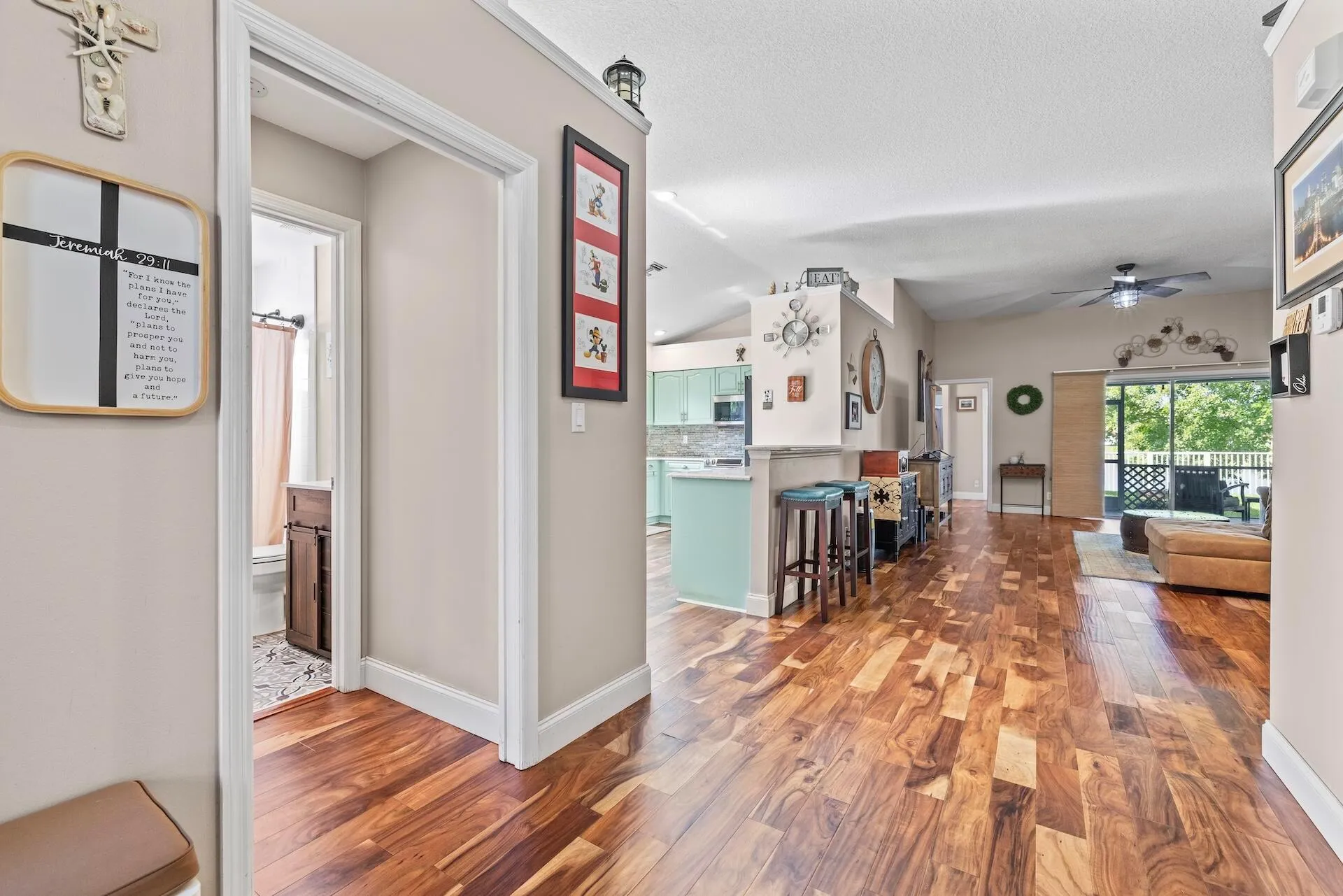 This stunning home in the heart of Royal Palm Beach offers everything you need and more. Brand-new roof installed in 2023, complete with seamless gutters. All windows have impact glass and accordion shutters on the sliders. Step inside to discover wood flooring that flows beautifully throughout the living areas, creating a warm and inviting ambiance. The kitchen features newer appliances, elegant granite countertops, and real wood cabinets, providing ample storage. This home boasts a thoughtful three-way split floor plan, offering privacy and convenience for family members and guests. The spacious master suite opens to two walk-in closets and large bathroom. The additional bedrooms provide versatility for a home office, guest room, or playroom. |