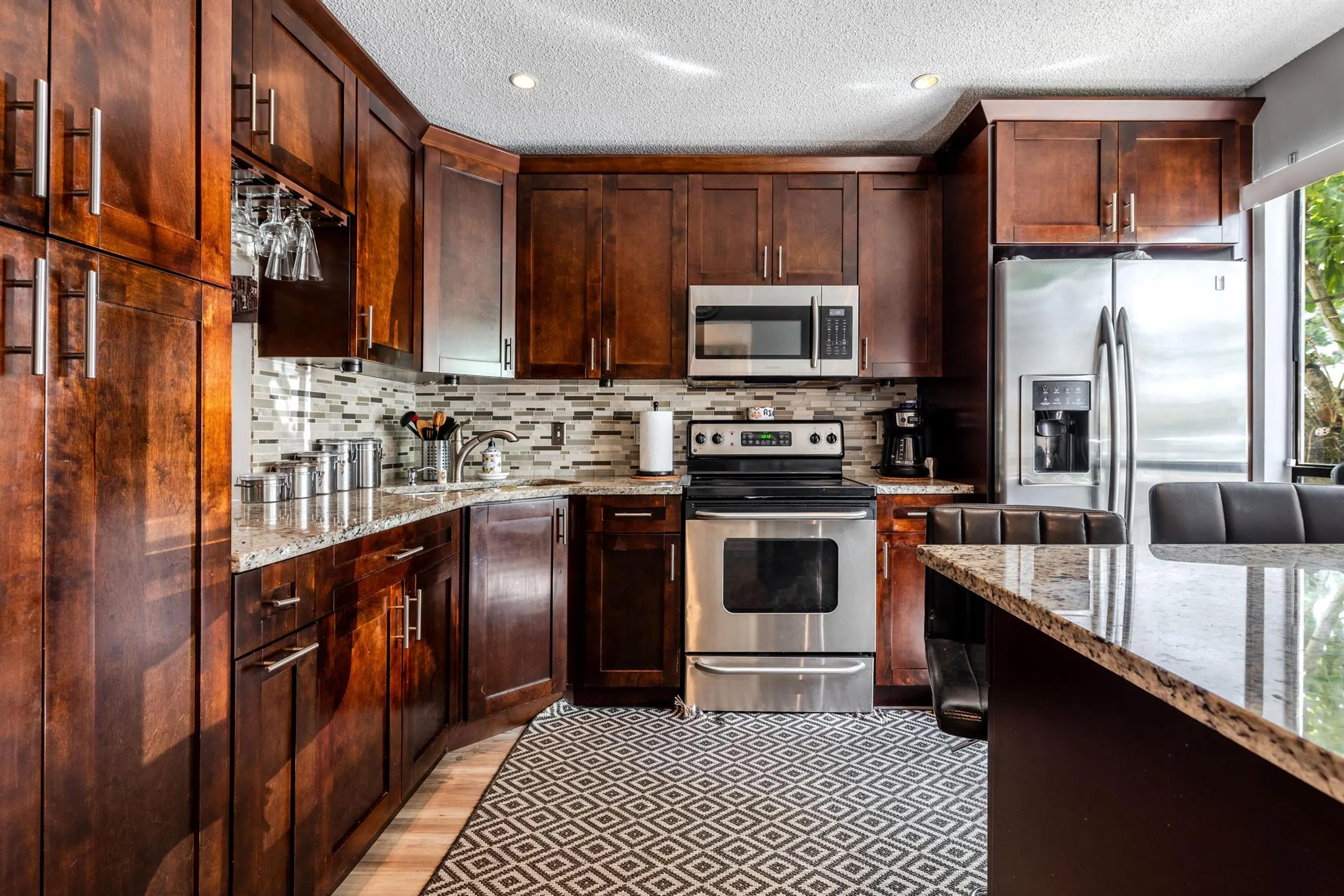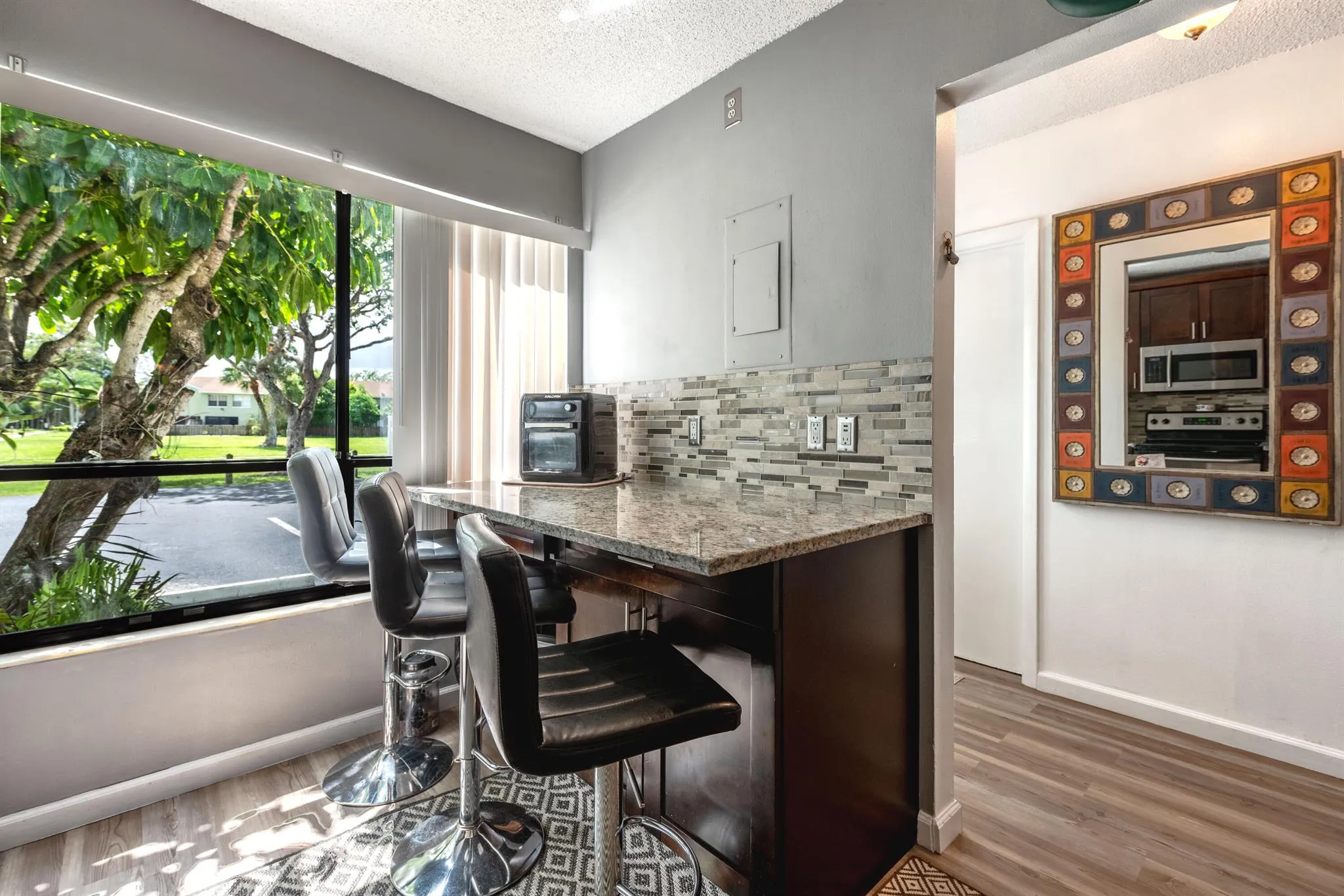 NEW ROOF AND SIDINGS updated 3-bedroom, 2-bath corner townhome in a prime location! This spacious home offers a recently renovated roof with a semi-open floor plan, abundant natural light, modern finishes, and brand-new waterproof vinyl floors throughout the first floor. The updated kitchen features stainless steel appliances, granite countertops, and a breakfast bar that flows into the dining area. The master main suite has a spacious wall closet and an upgraded bathroom. Enjoy your private outdoor patio, perfect for relaxing or entertaining--Hurricane-ready with accordion hurricane shutters throughout the home. Society Hill is conveniently located on Haverhill Blvd between Summit Blvd and Gun Club Road. Near schools, shopping, dining, and major highways. Low HOA fees! Move-in ready |