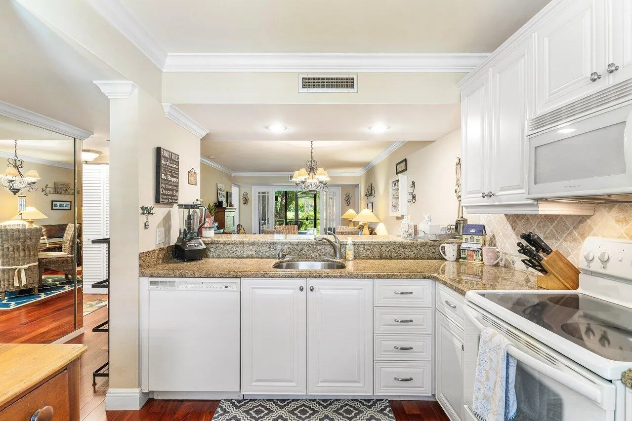 Welcome to your dream home! This incredibly spacious first-floor corner unit condo offers 2 bedrooms, 2 bathrooms, and a versatile den that can easily serve as an office or a third bedroom. Updated with beautiful hardwood floors, open concept kitchen with granite countertops, and beautiful crown molding throughout. Enjoy your morning coffee or evening relaxation on one of the two screened-in patios, each offering serene golf course views. More features include walk in closet in master bedroom, a large laundry room inside the unit, and an area for additional storage. Located directly across from the pool and clubhouse, you'll have easy access to community amenities. Close proximity to A Rated Schools, Beaches, Parks, Top-Rated Restaurants, Shopping, Mizner Park, |