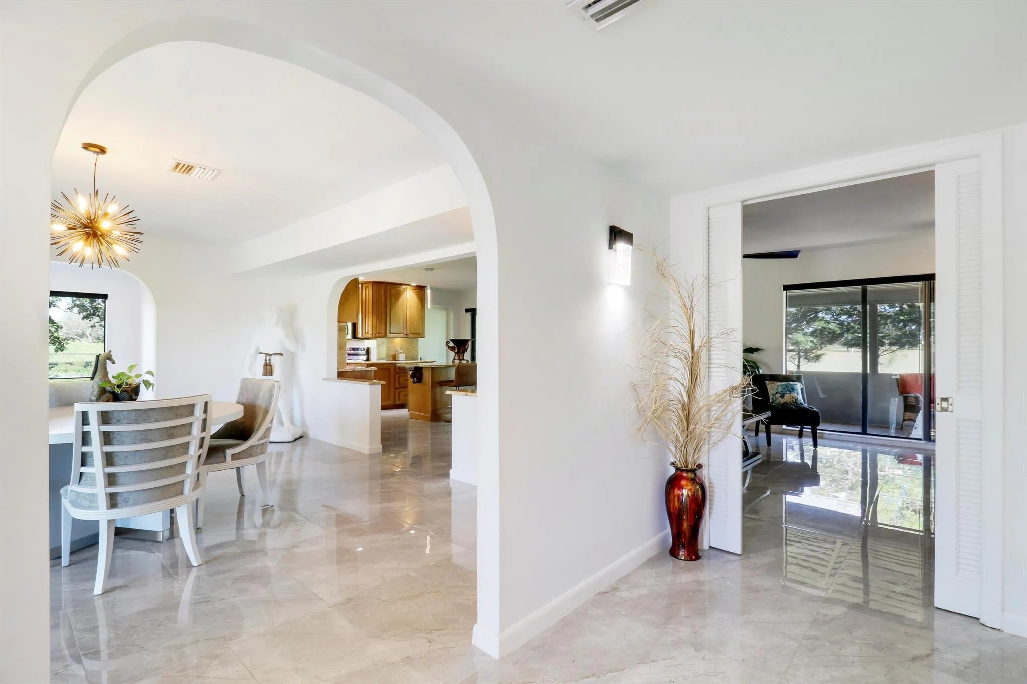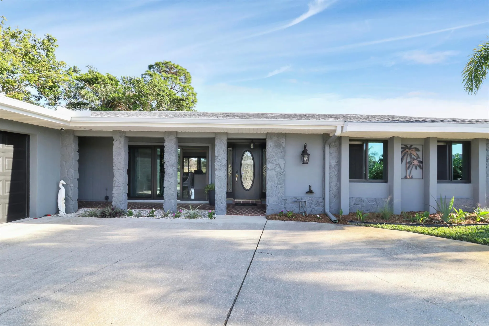 Looking for a move-in-ready home, this is it! Beautiful 3 bedroom, 2 bath CBS home situated on the Saints Golf course with NO HOA & room to park your RV/Boat! Gorgeous new tile flooring throughout, new impact windows & doors, new, roof, new attic insulation, new lighting/fans throughout, kitchen has solid wood cabinets with new appliances, new custom built in entertainment center with heated electric fireplace, new refinished ceilings, freshly painted interior & exterior, new updated master bathroom on-suite & guest bathroom. Exterior features a huge 45ft long screened patio with new wood-plank tile, fenced dog run, lush landscaping with private view of golf course on cul-de-sac & RV/boat gravel pad. Just a short bike ride to Sandpiper Bay Resort & less then a 20 min drive to the beach. |