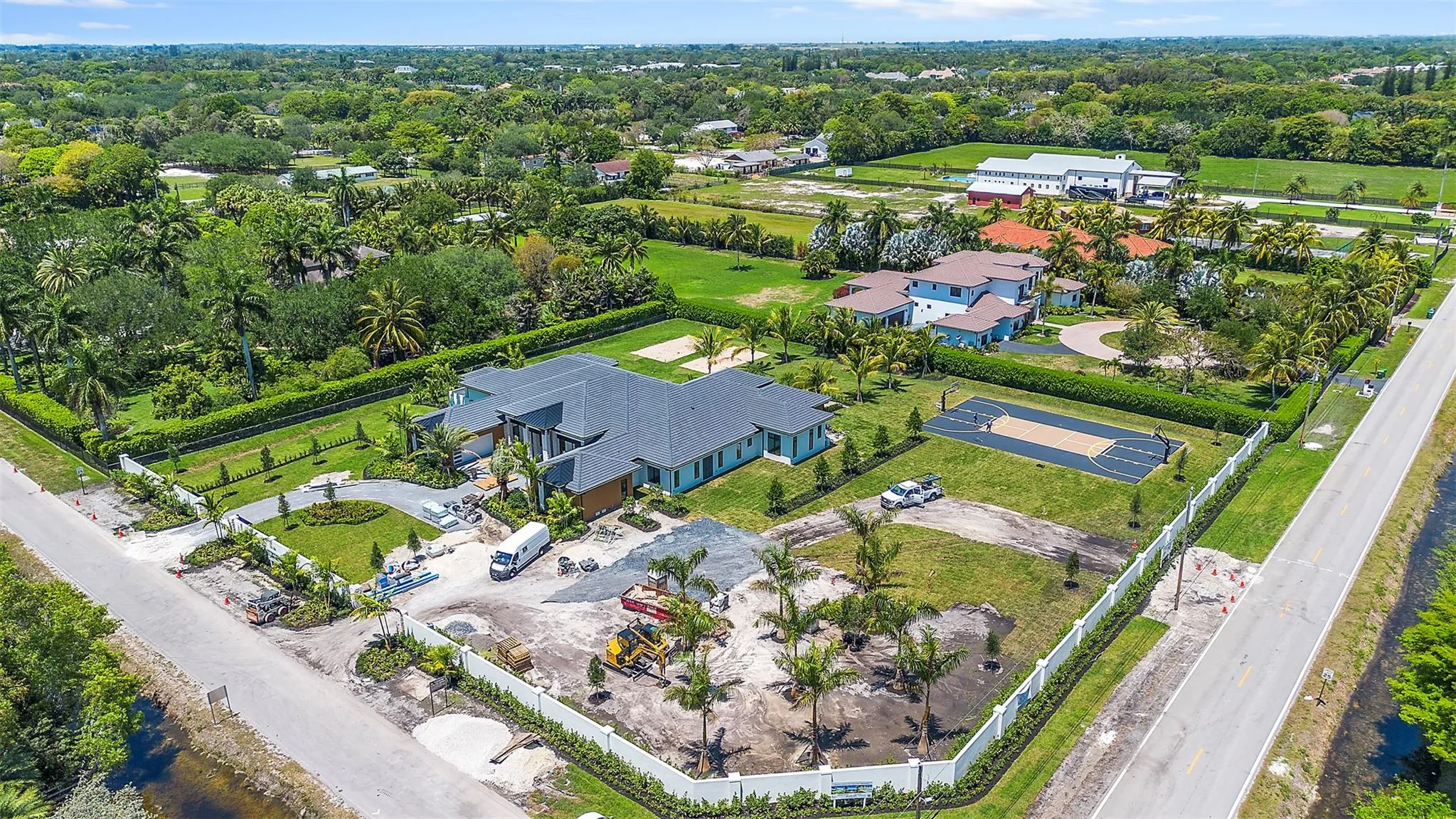 Welcome to this exceptional 2-acre custom compound, located in the highly coveted Southwest Ranches—known as the “Hamptons” of Broward County. This luxurious private estate offers over 9,000 square feet of meticulously designed indoor and outdoor living space, delivering the ultimate blend of privacy, safety, and opulence. The Estate features a customizable sports court, exercise trail around complex, golf practice area, a private gym and wellness space with sauna, a swim-up bar and hot tub. Enjoy entertaining by the sunken fire pit surrounded by lush landscaping. Everything conveniently situated behind a secure privacy wall. A true oasis of luxury, comfort, privacy and exclusive living. Private overflow parking for entertaining & NO HOA. Customizable features still available if you hurry |