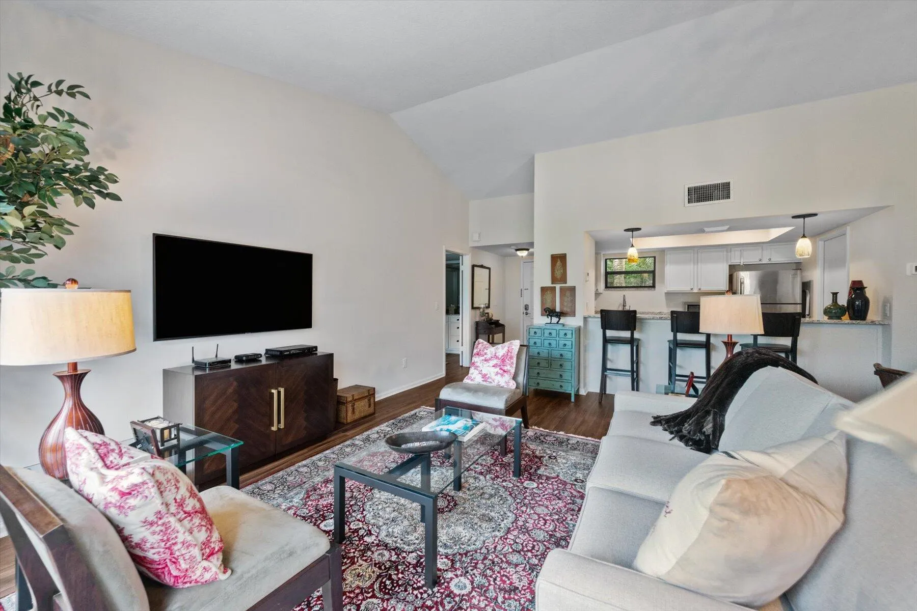 Fantastic opportunity to own a meticulously maintained condo in the prestigious Palm Beach Polo Club! This versatile condo can function as a full 2-bed, 2-bath unit, or be divided into 2 separate living spaces. One side can serve as a studio apartment, complete with its own kitchen, bathroom, balcony, and washer/dryer. The other side is a spacious 1-bedroom apartment with a separate balcony, full kitchen, and laundry. Perfectly set up and ready for the season, this unit boasts numerous updates, including vinyl plank flooring, impact windows (except for sliding doors and master bath), granite countertops, and stainless steel appliances. All special assessments have been paid in full by the current owner. The community pool is nearby, and the Polo Club offers great amenities |