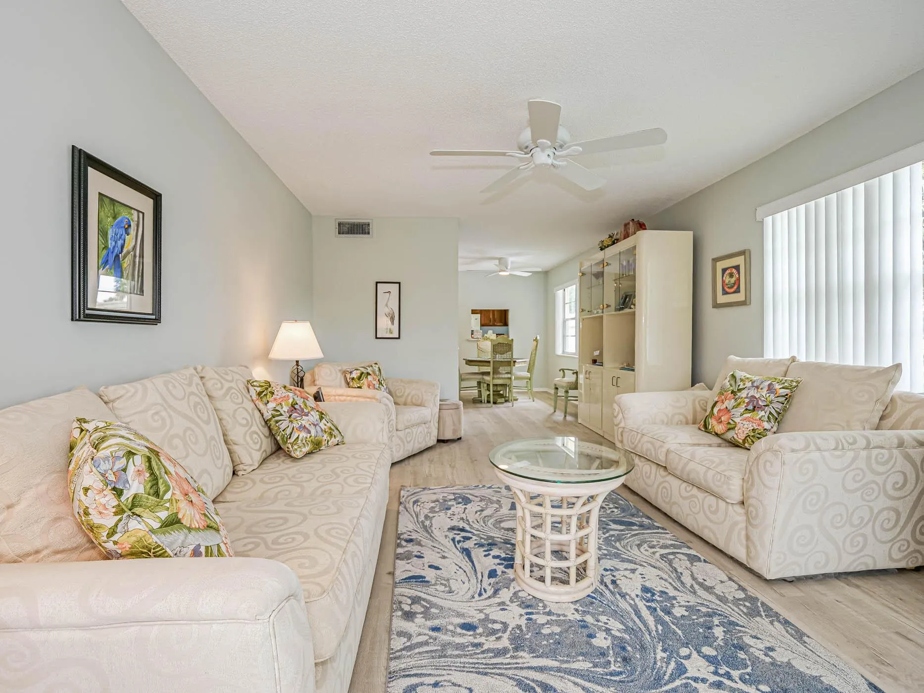 Available as an offseason or seasonal rental. Fully furnished, end unit. 2nd floor ''A'' model w/ split bedroom plan features newer laminate floors, freshly painted interior, and full-sized washer and dryer inside. Fully furnished and located in Vista Gardens a vibrant 55+ community, enjoy tennis, heated pool, hot tub, shuffleboard, and group activities. Gold available separately. Just 2 miles to beaches and close to shops and restaurants -- ideal location. Must be 55 years old, no pets, no commercial vehicles or motorcycles. |