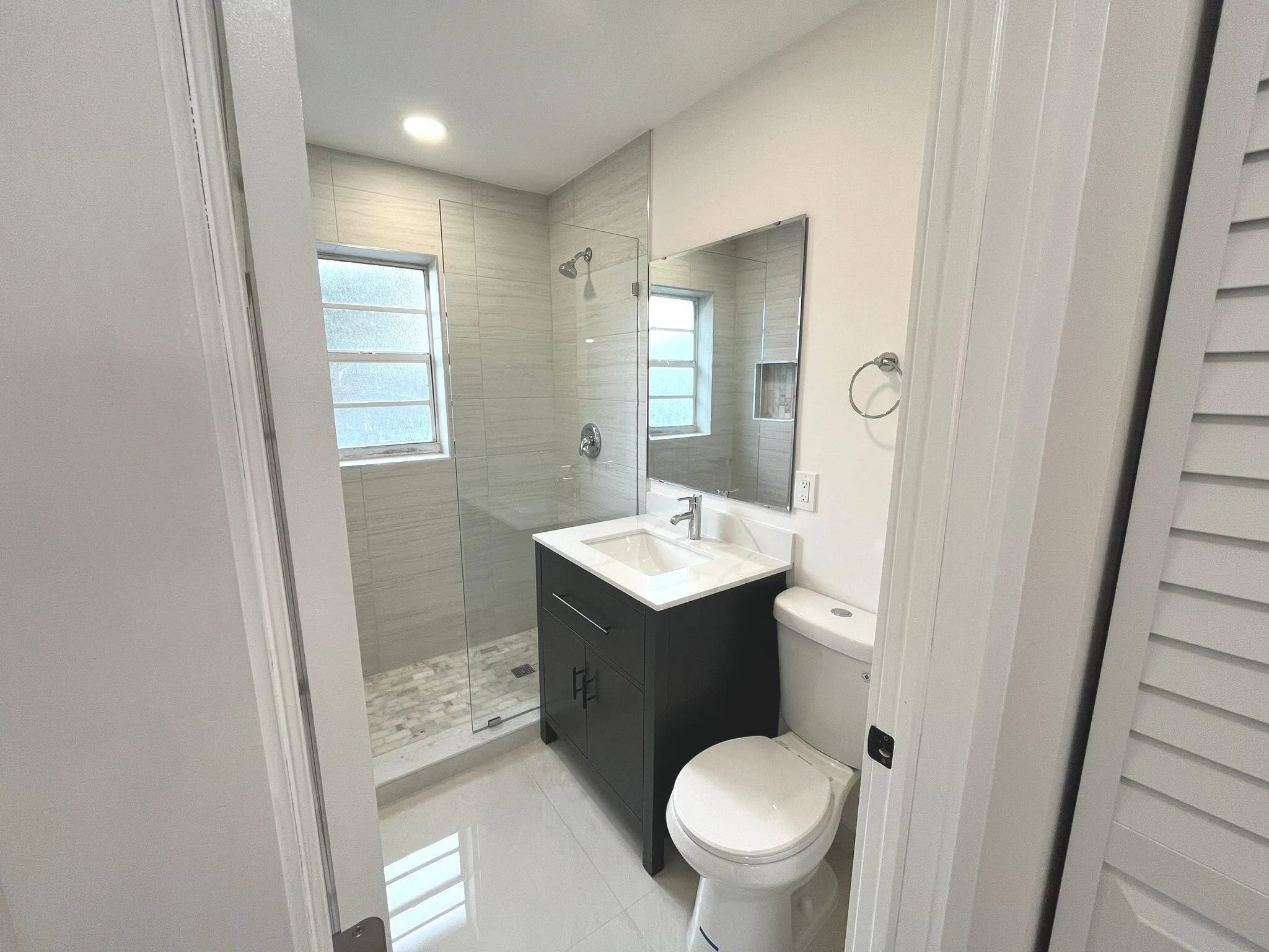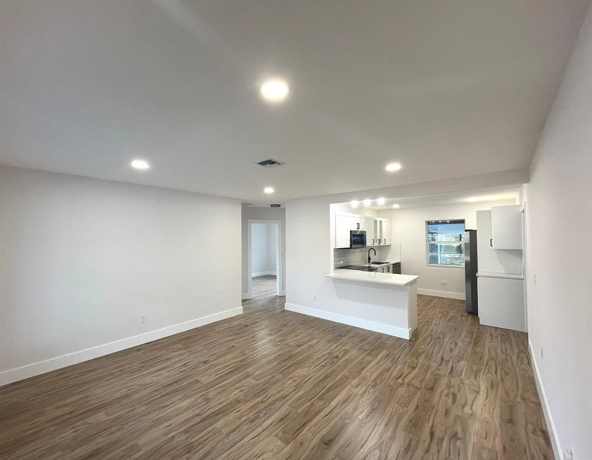 Completely renovated 3/2 Single Family Home. This unique house has the possibility to be split into 2 units. Main unit has a spacious living room connected to updated 2 bedrooms and a bathroom. All NEW open concept kitchen, cabinetry, quartz countertops, and Samsung stainless steel appliances. Bathrooms have new vanities, tile and fixtures. Also includes new flooring, lighting, ceiling fans and a freshly painted interior and exterior. Converted carpot can be used as an additional master bedroom with bathroom to live in or utilize as a separate unit with a private entrance perfect to rent. Additionally there's a laundry/utility room, screened in back porch, and a huge fenced in back yard . Large attic acces for tons of extra storage. Minutes from downtown Lake Worth and the beach. |