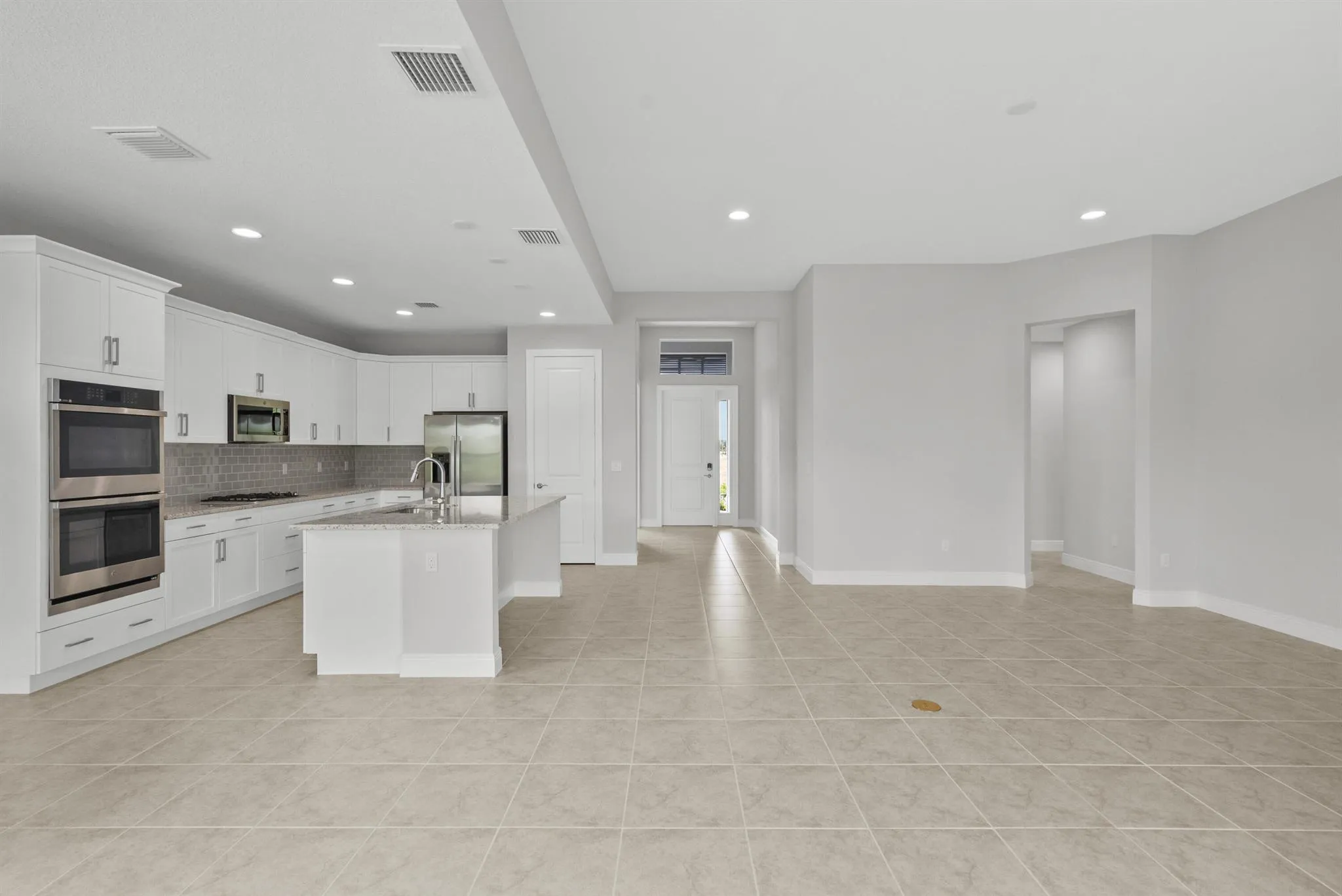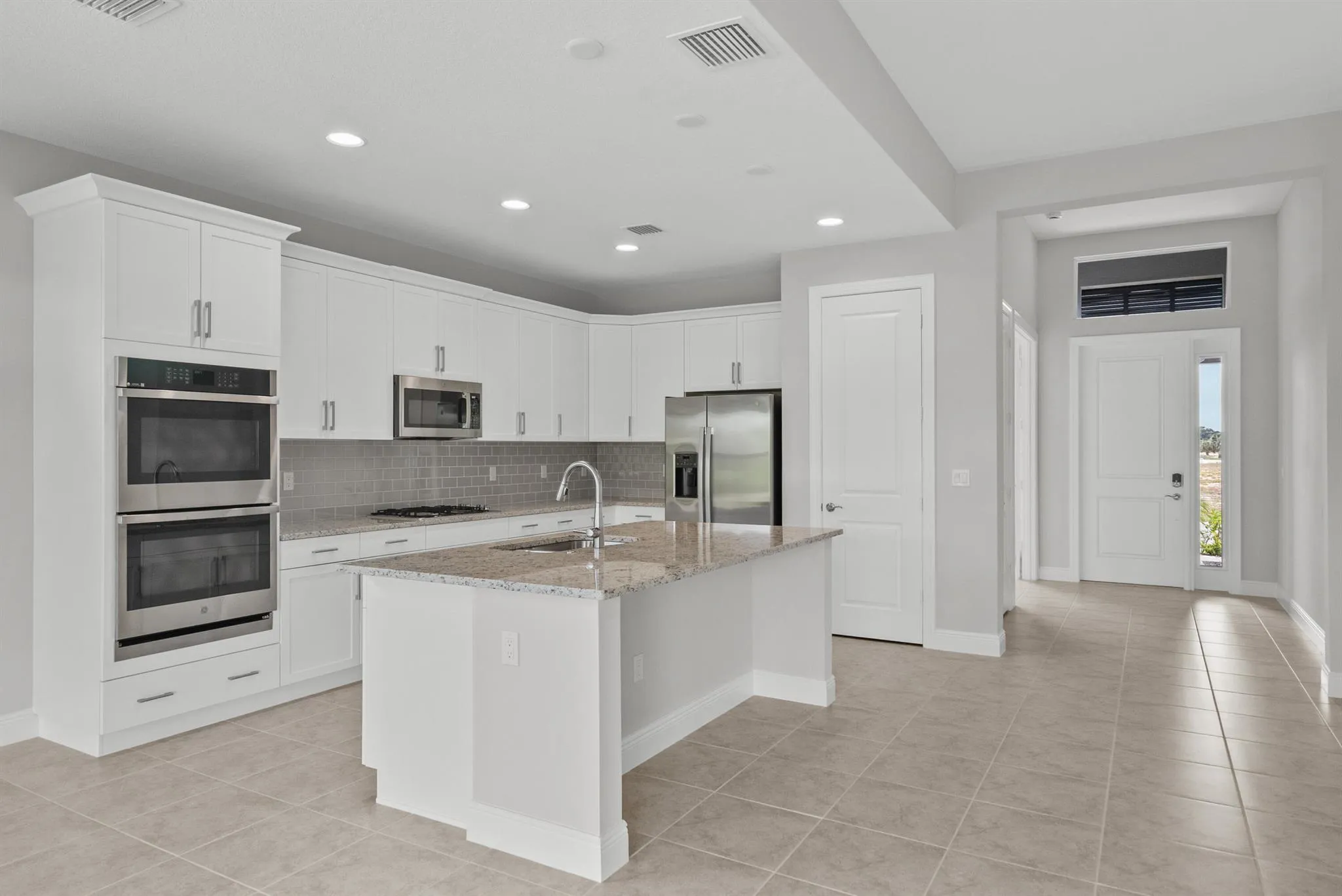 Discover lavish coastal living in High Pointe w/the Cordella Jem floor plan, situated on a spacious lot. This stunning residence offers 1899 sq. ft. of exquisite living space, featuring 3 bedrooms, 2 baths, & 3-bay garage. The kitchen is a chef's dream, boasting soft-close, dovetail, upgraded white cabinets w/crown molding & upgraded tile backsplash, complemented by a double wall oven & cooktop. Quartz countertops grace the kitchen & bathrooms, adding elegance to every space. Throughout the home tile flooring exudes warmth & sophistication. Enjoy peace of mind w/all window & slider doors crafted from PGT Impact glass. The home has the upgraded Island Elevation adding timeless curb appeal. |