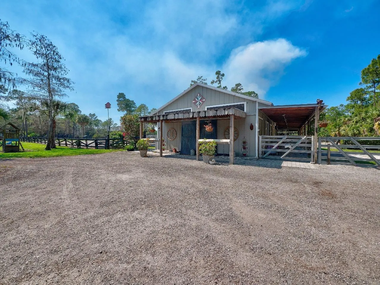 This absolutely beautiful 5 Fully Fenced acres in a quiet gated equestrian community of Deer Run can be yours! Deer Run is a gorgeous gated community, one of a kind that offers quiet private country style living, close to everything yet in the country which is hard to find anymore in Palm Beach County Florida. Easy hacking distance to the popular White Fences Dressage one block over, and minutes from Palm Beach airport, Winter Equestrian Center, and Global Equestrian. Deer Run offers endless trails for peaceful riding anytime. This amazing property has so much income potential with the spectacular attached Guest apartment with a full bathroom, Full bedroom and a full size kitchen and living room Perfect for a Mother in Law suite, Grooms quarters, guests or great monthly rental income. |