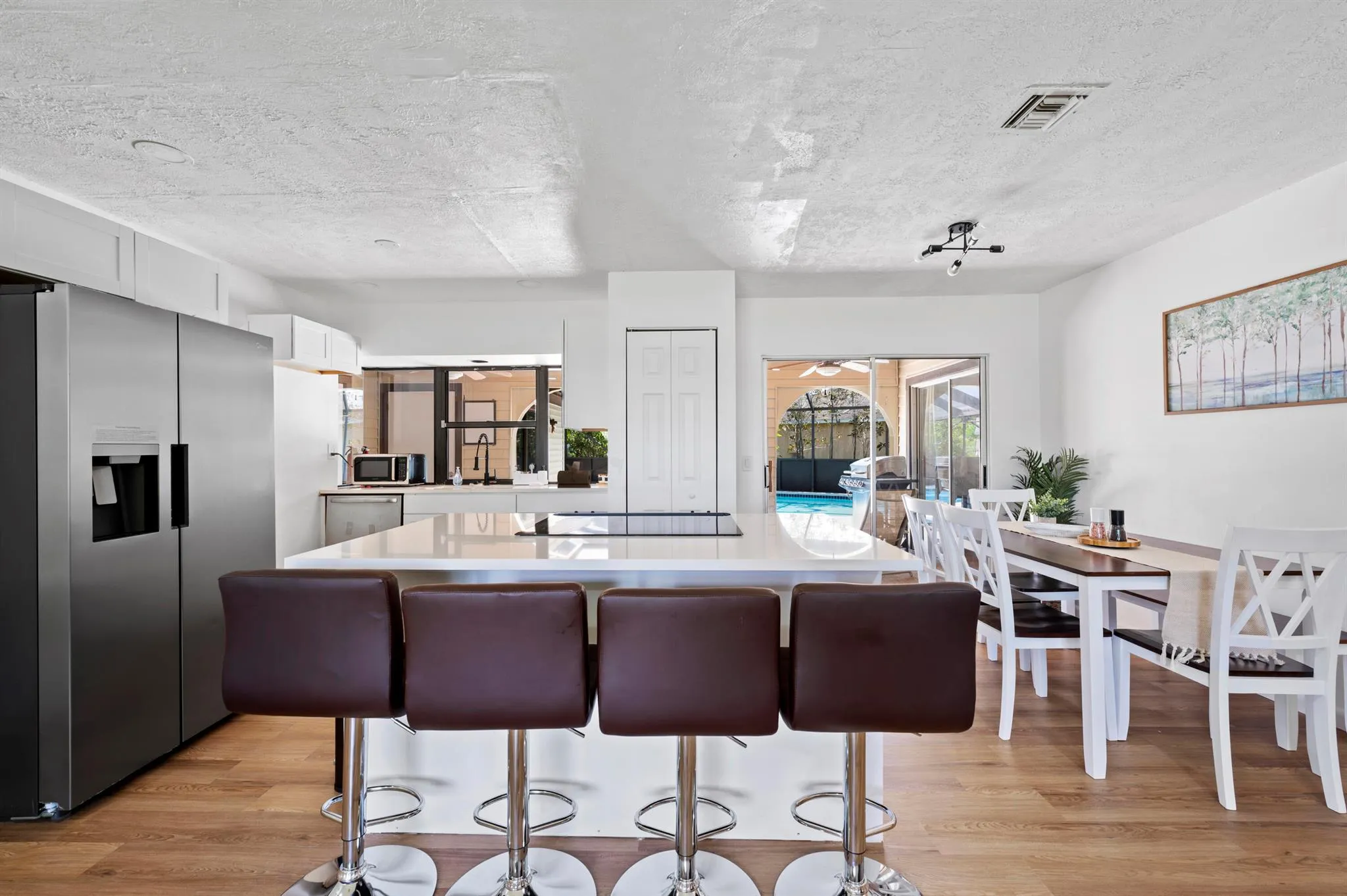 Presenting a meticulously crafted 3-bed, 3-bath corner lot residence, ideal for discerning professionals. The main house boasts 2 bedrooms and 2 bathrooms, plus an attached bedroom and bath, alongside a versatile flex room. Its open floor plan seamlessly connects living, kitchen, and dining areas, perfect for relaxation and refined entertaining. Updates throughout reflect modern living at its best.Outside, a solar-heated pool offers a serene setting, complemented by a spacious guest suite. Plus, roof will be replaced by closing with a full-price offer, enhancing value and peace of mind. Appraised at $440k, this home blends luxury and practicality for sophisticated living. |