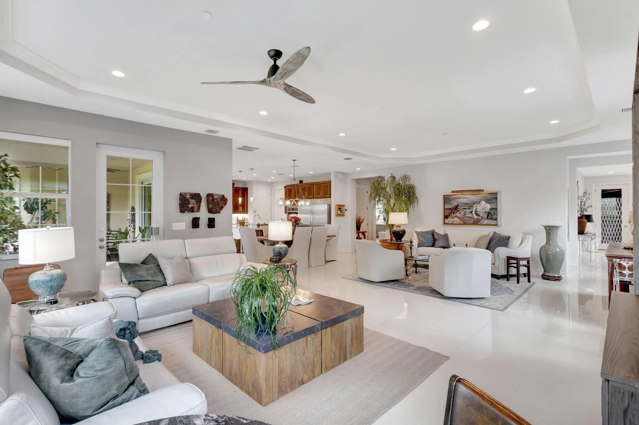 Beautiful Carriage Home - Live luxuriously and comfortably in this spectacular upstairs home featuring a huge Primary Bedroom suite, chef's kitchen, 2-car garage, 2 foyers, glass door elevator and large balcony overlooking the 9th fairway. Over 3,000 sf that includes 3 spacious bedrooms and 2 1/2 baths. Primary suite boasts his and her walk-in closets, sitting area, and private balcony. Unique layout allowing both Living Room & Dining Room areas. Modern color scheme and design throughout. The home features impact windows. Surrounded by mature palms, you'll be living in a treehouse above the golf course. Owner/Builder occupied and continual maintenance of all things! Jupiter Country Club is a luxury gated community close to I-95 & FL Turnpike. By appointment only. Seller is Lic. Broker |
