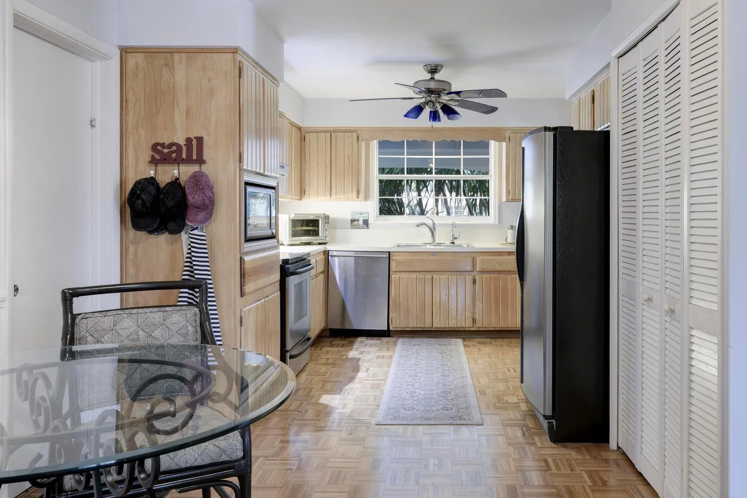 This exceptional property offers a harmonious blend of indoor comfort and outdoor beauty, providing a perfect retreat for those seeking a tranquil lifestyle amidst the vibrant charm of Florida living. This home boasts 3 bedrooms, 2 full bathrooms, an extended one car garage, extra storage areas, and plenty of outdoor space for relaxing or entertaining. Some of the other features include, solid wood parquet floors throughout most of the home, and tile and terrazzo in other areas. The kitchen features solid wood cabinetry with pull out drawers, a full complement of stainless steel appliances, and a cozy breakfast nook. There is also a formal dining room, French doors, a spacious Florida room and a large screened in covered patio. The backyard is tropical paradise |