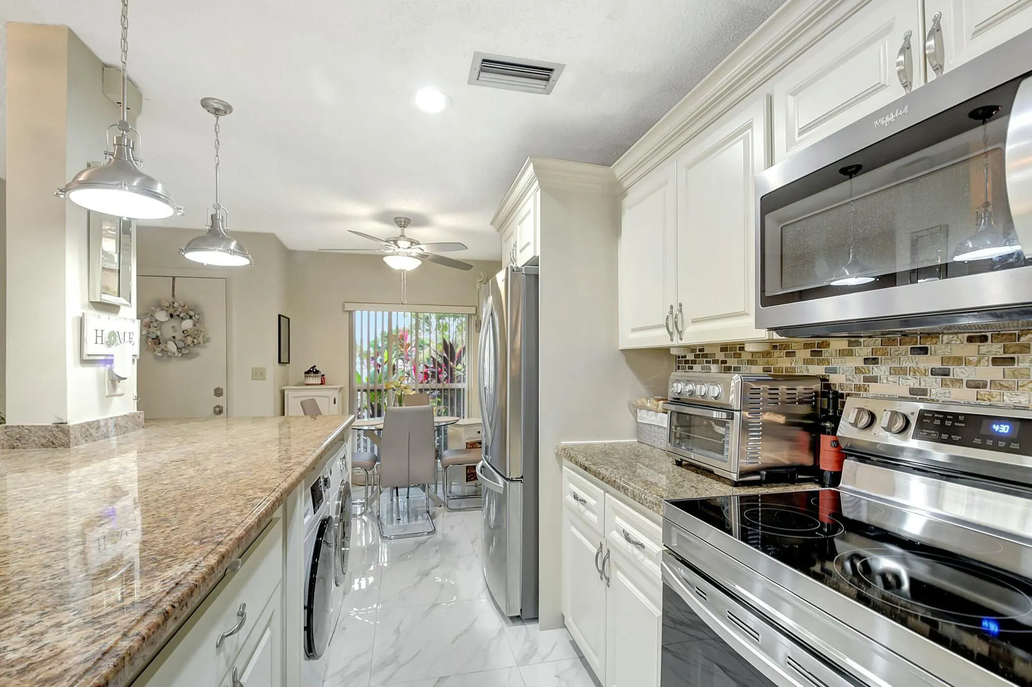 This entry-level villa in Palm Greens offers a screened lanai with lake views, a remodeled open kitchen with stainless steel appliances, and updated bathrooms. The home has plenty of natural light and ample storage. Palm Greens is conveniently located near shopping and restaurants. A new state-of-the-art clubhouse is under construction, with no special assessments or capital contributions required. |