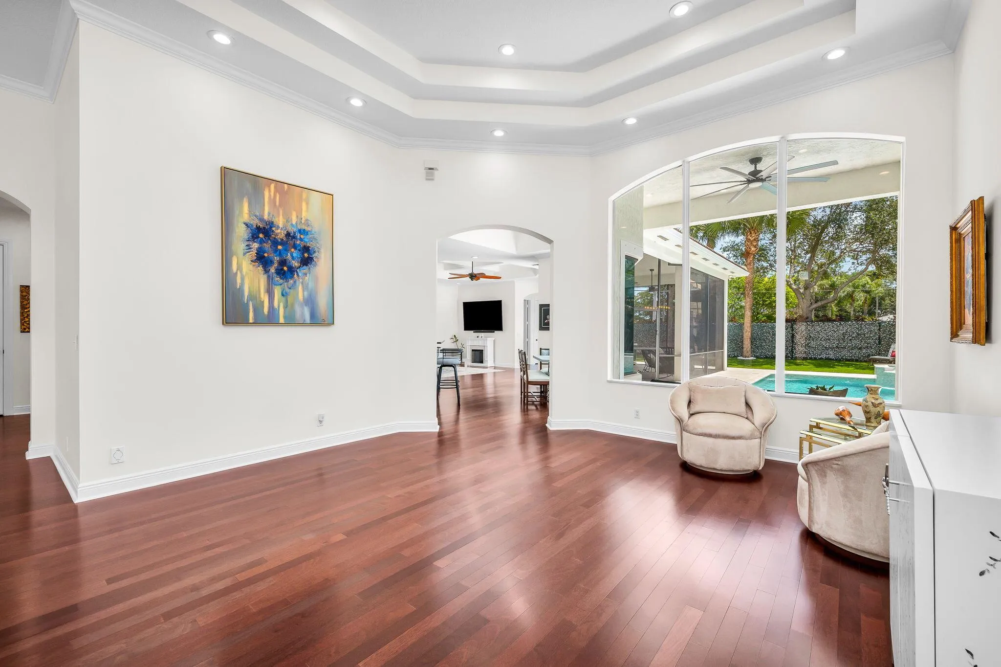 Welcome to Your Dream Home in Casa Bella! Step into a home that truly checks every box. A beautifully updated, single-story 4-bedroom, 3 bathroom residence located in one of Delray Beach's most prestigious guard-gated communities, Casa Bella. From the moment you enter, you'll be welcomed by a formal foyer with soaring ceilings and custom coffered design accents that draw your eye straight through to the stunning backyard. The outdoor space is a private resort-style oasis with a recently renovated marble patio, heated saltwater pool and spa, and a low-maintenance turfed backyard. Perfect for relaxing or entertaining in style! Enjoy year round outdoor living with a spacious screened-in and covered patio, complete with a fully equipped summer kitchen. Ideal for alfresco dining and |
