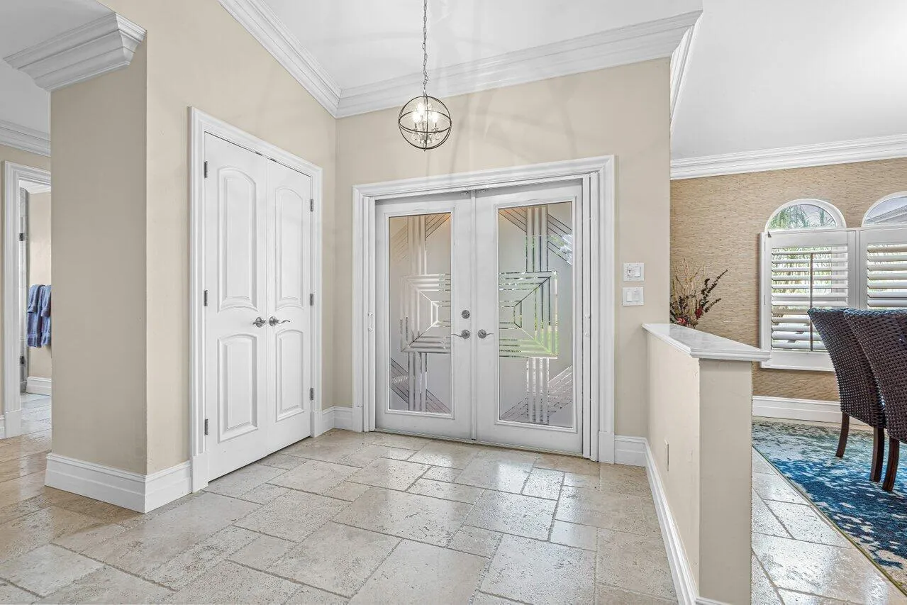 **Exquisite Home in the Prestigious Estate Section of Rainberry Bay**Set on a coveted corner lot on a serene cul-de-sac, this stunning residence offers over 2,500 sq ft of living space, featuring 2 bedrooms, a den, 2.5 baths, and a spacious 2-car garage.Enter through the grand double doors to the foyer to be greeted by Jerusalem tile floors, crown moulding, skylights, and plantation shutters. The expansive, chef-inspired kitchen is the heart of the home, showcasing an extra-large island, custom cabinetry, a farmhouse sink, premium appliances, a beverage cooler and granite countertops. Entertain guests in the formal dining room or unwind in the enclosed Florida room. The primary bedroom includes both a spacious walk-in closet and an additional wall closet, each outfitted with |