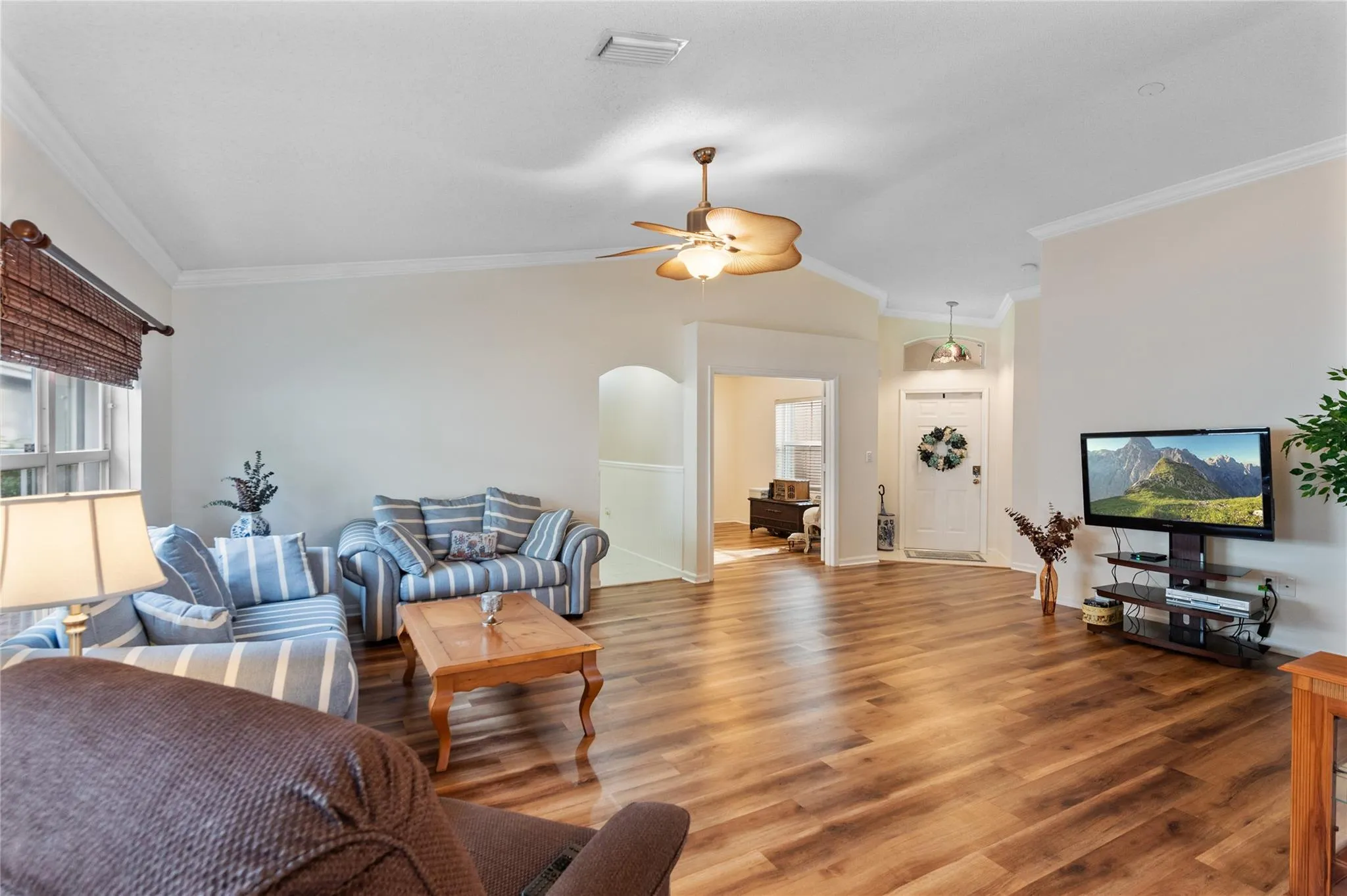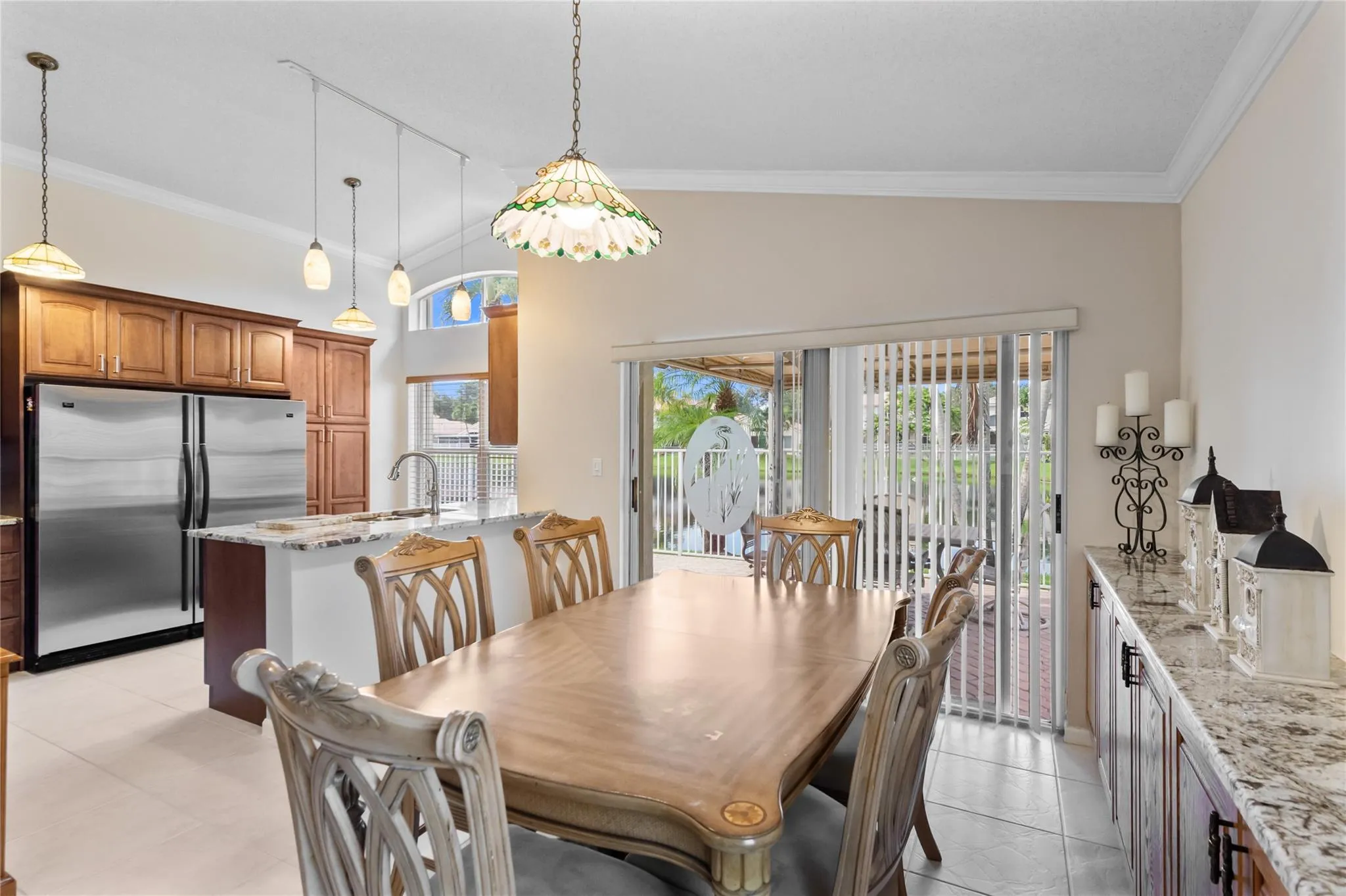 Welcome to your serene waterfront oasis in the gated community of Lakes of Windermere. This stunning single-level residence including 4 bedrooms with a split plan, 2 bathrooms, and vaulted ceilings that enhance the spacious feel. Enjoy waterfront living with picturesque views. Key features include rolling Hurricane shutters, water heater installed in 2019, the a/c, 2013. The homes layout is designed for both relaxation and entertaining, with a well-appointed kitchen, and spacious living area.
