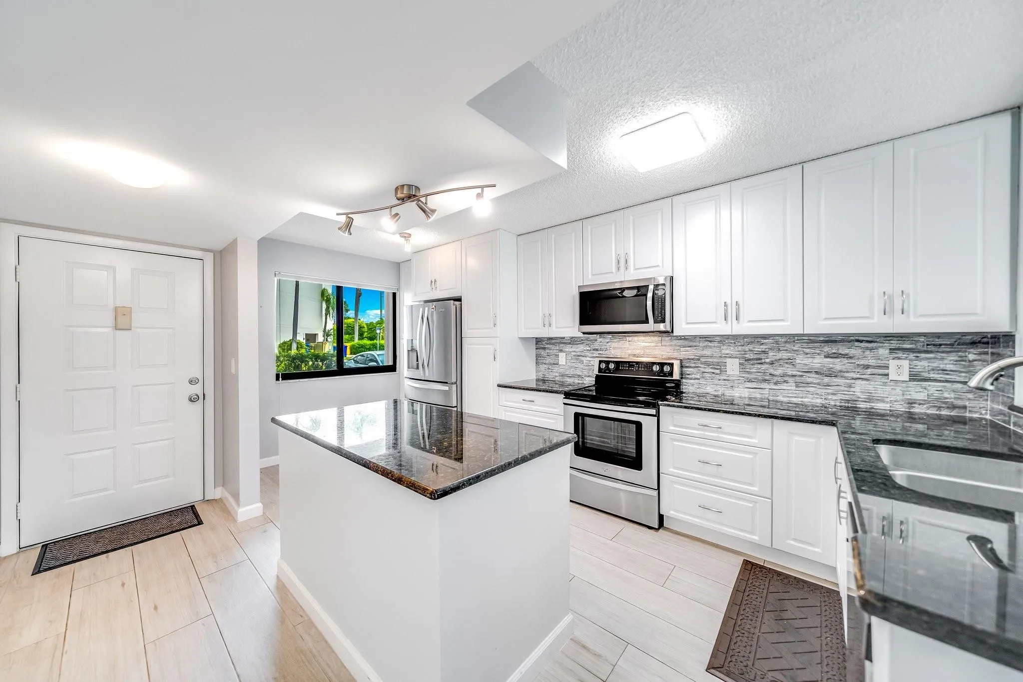 This peaceful, fully renovated, move-in-ready 2-bedroom, 2-bathroom FIRST-floor condo offers modern living with style and comfort. The updated kitchen boasts stainless steel appliances, tall cabinets with Lazy Susan cabinets, and a spacious island, perfect for entertaining. Ceramic floors lead through the bright living space with hurricane-proof windows and doors. Step outside to enjoy a tranquil lake and beautiful water fountain view. The master bedroom features customized closets and a spa-like en-suite with a glass shower and Toto toilet. The guest bedroom is equally inviting, offering versatility for guests or a home office. Additional upgrades include a full-size washer/dryer, new fans, a 2023 A/C unit, UV-C light to control mold growth and double accordions storm windows shutters. |