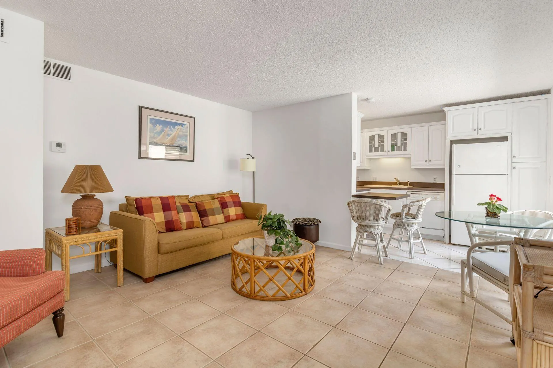 Charming 1 bedroom, 1 bath first floor condo with a delightful open courtyard. Step saving kitchen, tile throughout. Freshly painted and new shower. Ideal location within walking distance to the Jupiter Beach. |
