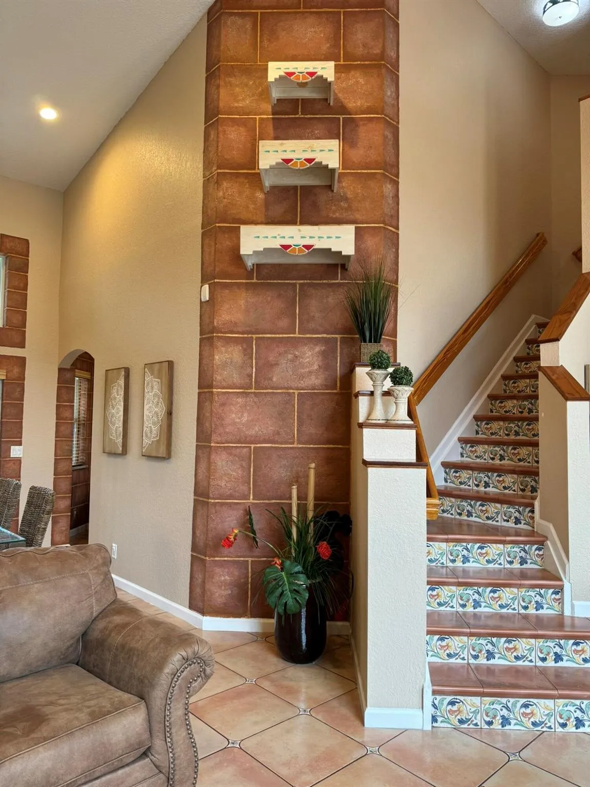 Stunning 2 story single family home, 3 bedrooms, 2.5 bathrooms, and two car garages. Elegant grand entrance with decorative hurricane impact glass doors. This house has a charming, luxurious interior. Freshly painted interior. The windows in the front of the house provide ample natural light. The kitchen features marble counter tops, tile backsplash, custom wood cabinetry with built-in pantry, and a breakfast nook. New hallway lighting. Custom painted bricks details through the first floor. Custom tile through the house and Mexican tile risers on staircase. Spacious master bedroom with a tray ceiling, walk-in closet, and a bathroom with dual sinks, soaking tub, and separate shower. Surround sound. Enclosed backyard with lanai. This house is near A-rated schools, shops, and restaurants. |