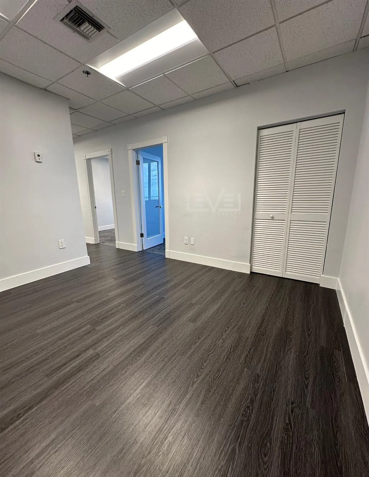 Completely updated turn-key office space with LVT flooring, glass insert doors, modern blinds, and new carpet. This unit is turn key with an open reception and lobby area, 2 offices with a conference room, IT closet, and a view of the Galleria Mall on Sunrise Blvd. |
