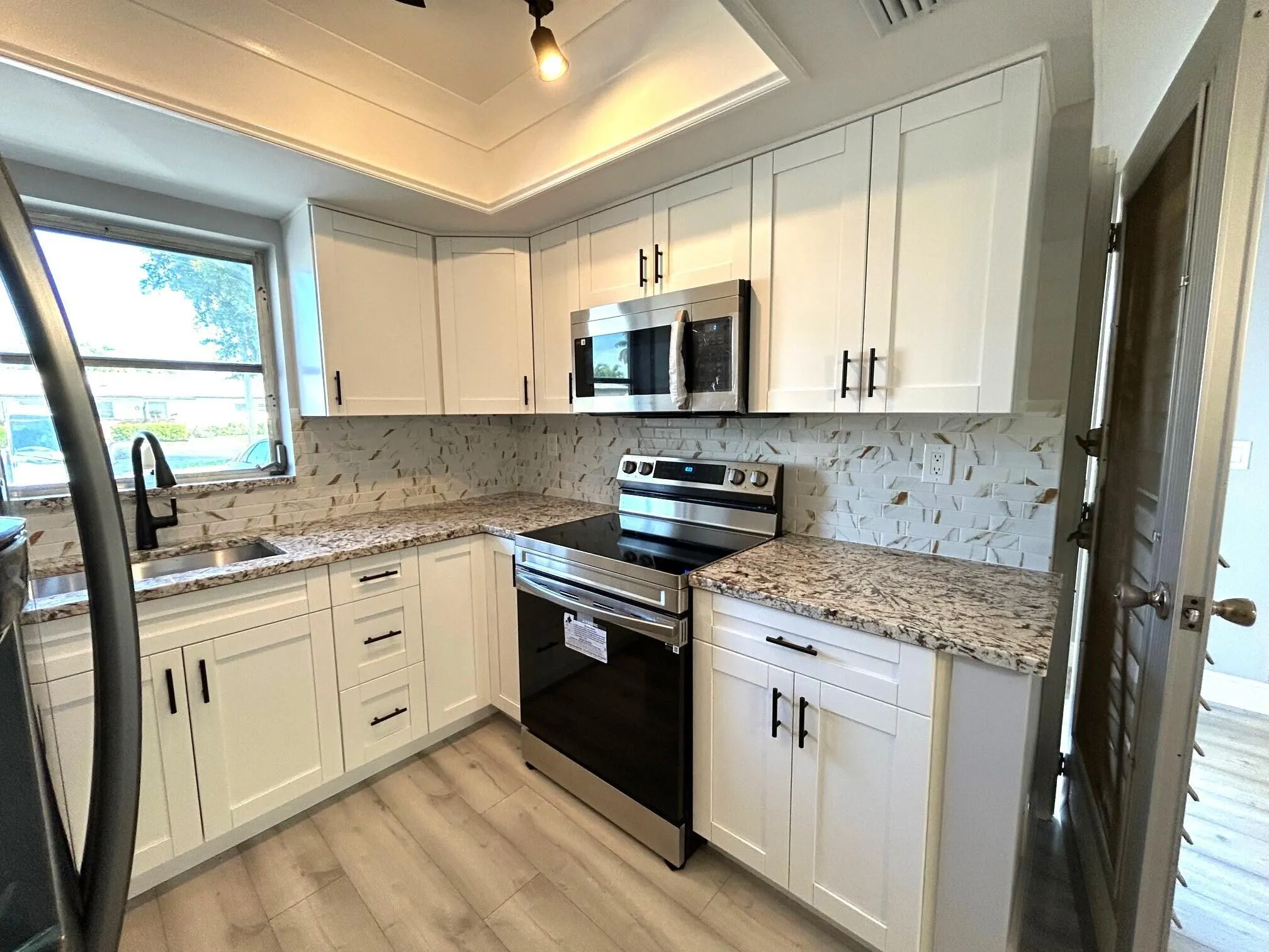 Beautifully renovated 1 bedroom 1 bath villa in the 55+ community of Cresthaven villas. This is the only section that is pet friendly. Owners can have up to 2 pets with a total of 30 lbs. Special financing available for first time home buyers. The kitchen features a recessed ceiling, white shaker cabinets, granite countertops, subway tiled backsplash, stainless steel appliances. Wood look laminate flooring throughout. Bedroom includes large window & full wall closet. Lots of storage with a linen closet, coat closet and walk in storage on the porch. Bathroom classically renovated with oversized vanity, marble tiled walk in shower with niche and frameless glass barn door style shower door. New electric panel. Enclosed porch. Patios and bbqing allowed. Low maintenance includes water and cabl |