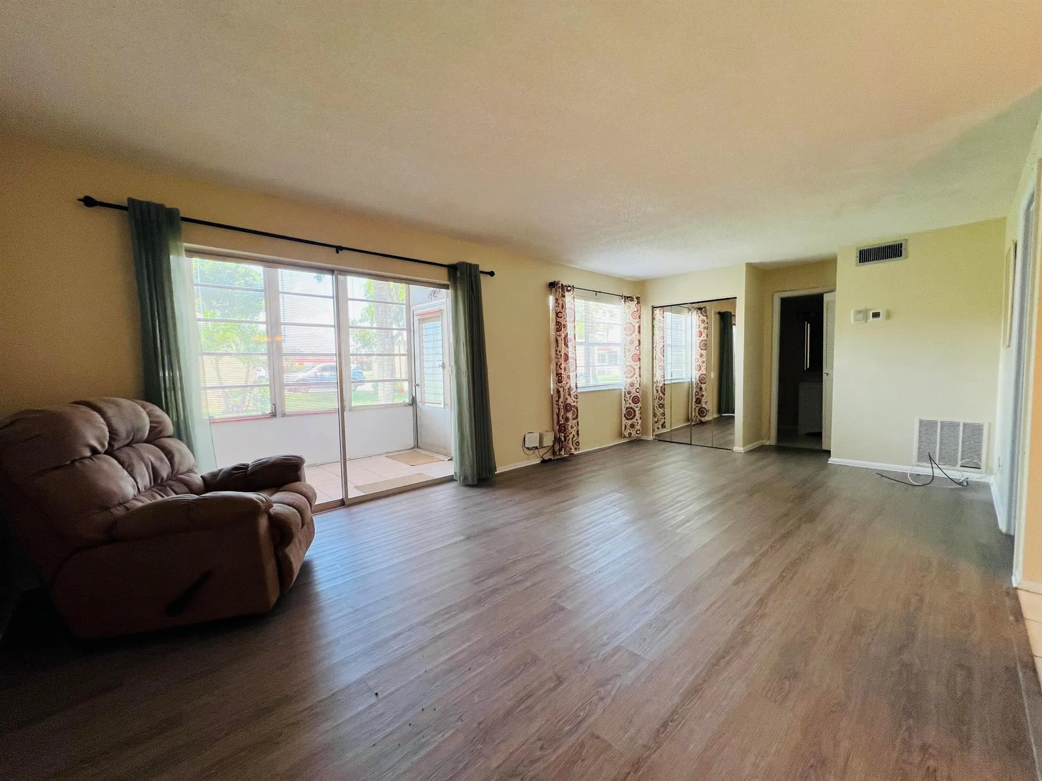 Welcome home to your perfect condo in Golden Lakes! This first-floor condo boasts a spacious master bedroom with a walk-in closet. The versatile floor plan, originally two bedrooms, now offers an expansive living area but can easily be converted back. Enjoy relaxing on the glass-enclosed patio/FL Room with a tiled floor. You'll love the convenience of the best parking spot right next to the walkway and having laundry, mail, and extra storage just steps away. PERFECT LOCATION! Nestled in a guard-gated community brimming with amenities, including a clubhouse, pool, spa, gym, bocce ball, and shuffleboard. A social director keeps activities lively and engaging. Perfectly located near shopping, restaurants, and the turnpike, with the airport and ocean just a short drive away. Paradise awaits! |