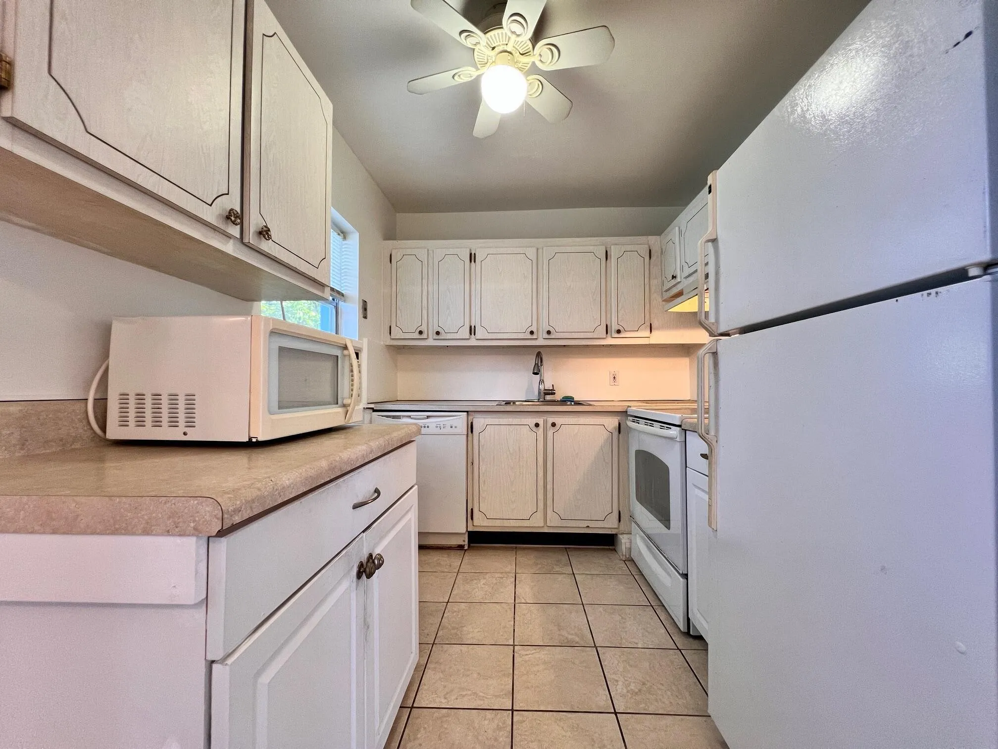 LOCATION - LOCATION - LOCATION IN 55+ CENTURY VILLAGE!!! Light & Bright Salisbury Section CORNER Two Bedroom / Two Full Baths With Updates! One Bedroom, With a Hall Pocket Door, can be a Suite with Walk-in Closet, Full Bath, and Access to the Screened Lanai. Updated Flooring Through Out - Wood Look Laminate in Living Area and Gleaming Tile Flooring in Bedrooms. Screened Lanai Is A Delightful Spot to Take In The Fresh Air and Breezes. Building Features a New Roof (2024), Gorgeous Mature Trees on Property, and Fantastic Central Location Between the Haverhill Entrance AND the Main Clubhouse! Century Village is a Resort Style 55+ Community With So Much to Offer... |