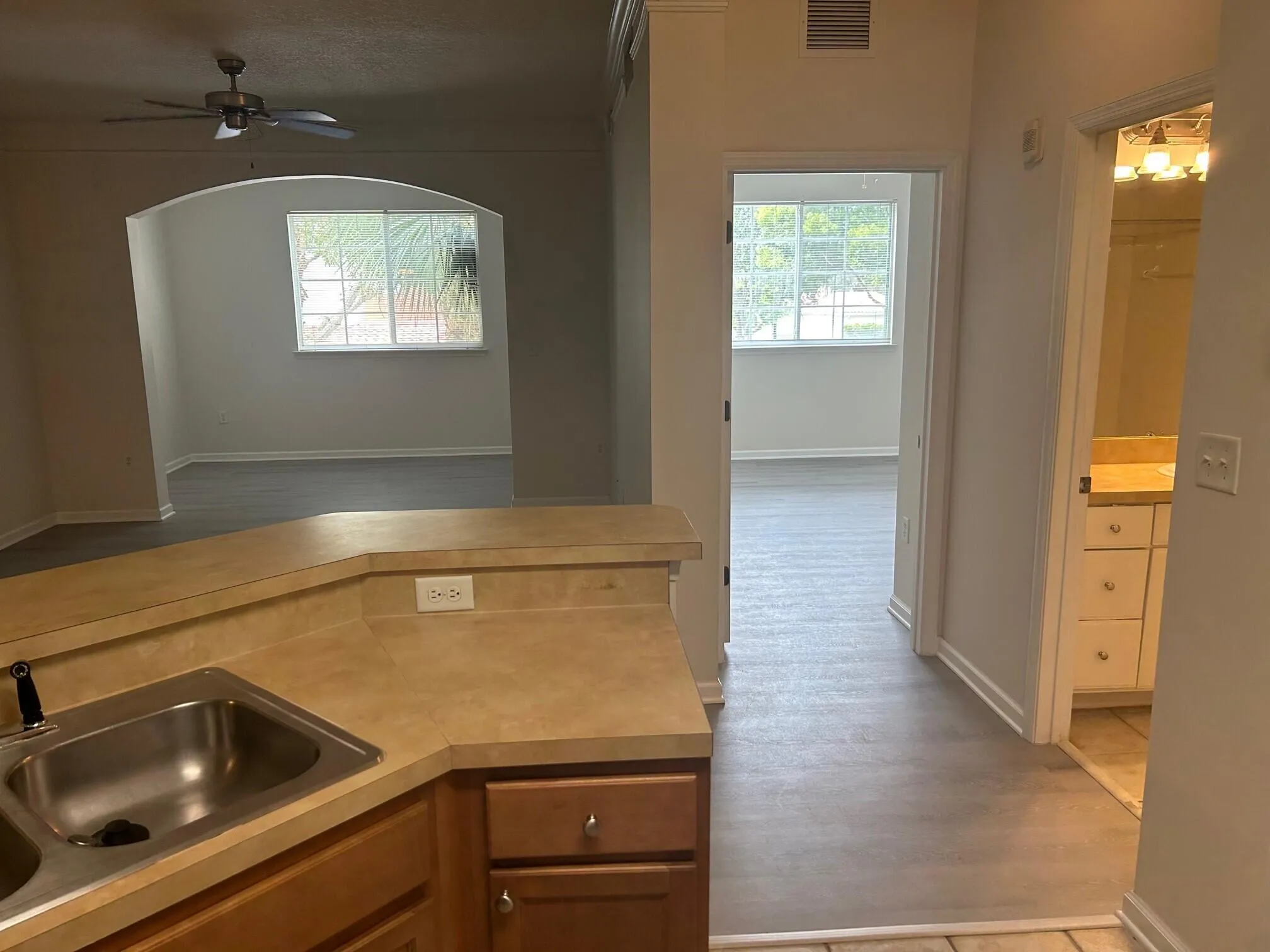 Spacious 1/1 on second floor with sun room Great location. Well maintained Gated community. Nice amenities. Brand new flooring and paint. Ceiling fans in every room, Crown Molding, Full size Washer/Dryer in the unit, Walk in closet. WATER INCLUDED Small Pets are welcome with restrictions and fee. No aggressive breeds. Employment and rental history verification are required. Income Restrictions apply - Must show income of $5250 or greater. 2 months security, no last month required. 1 assigned parking spot |