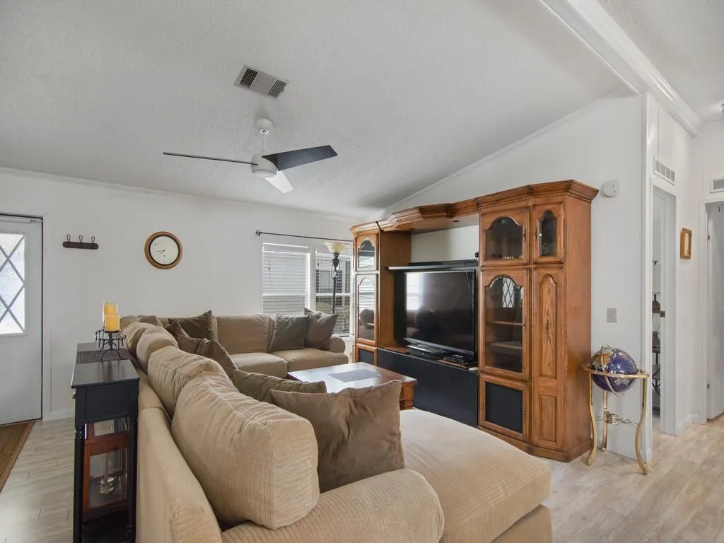 No Land Lease! 3 Bedrooms 2 bathrooms Mobile home in Amazing 55+ Community. Nice wood floors, spacious living room and Kitchen. Split plan! Newer roof and AC. Large, enclosed sunroom. Beautiful Clubhouse with lots of amenities. Buyer to verify measurements. |