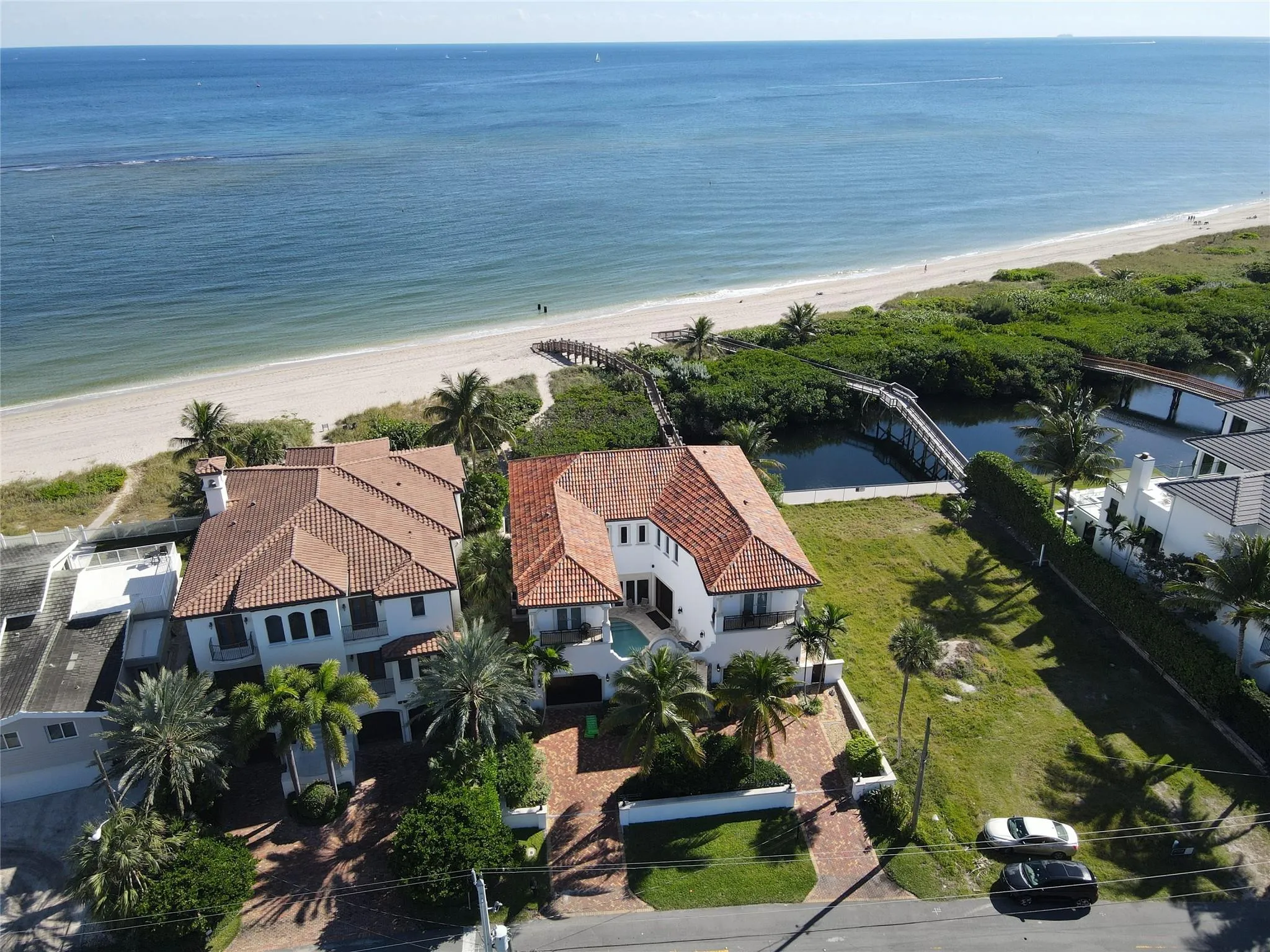 Enjoy a relaxed and luxurious beachfront vacation! Stunning 4 bedroom, 4.5 bath residence with direct beach access. 3 bedrooms on the 2nd floor including the luxurious master suite all with ensuite bathrooms. First floor has 1 bedroom also with ensuite bathroom, formal dining room and living room, eat in kitchen, family room with wet bar, pool table and video games. Gourmet kitchen with gas cook top, Viking wall ovens and a Sub-Zero refrigerator. Laundry rooms on both floors. Heated courtyard pool. Follow the private bridge over the dunes to the beach. Soak up the sun or enjoy a meal on the rear patio! |