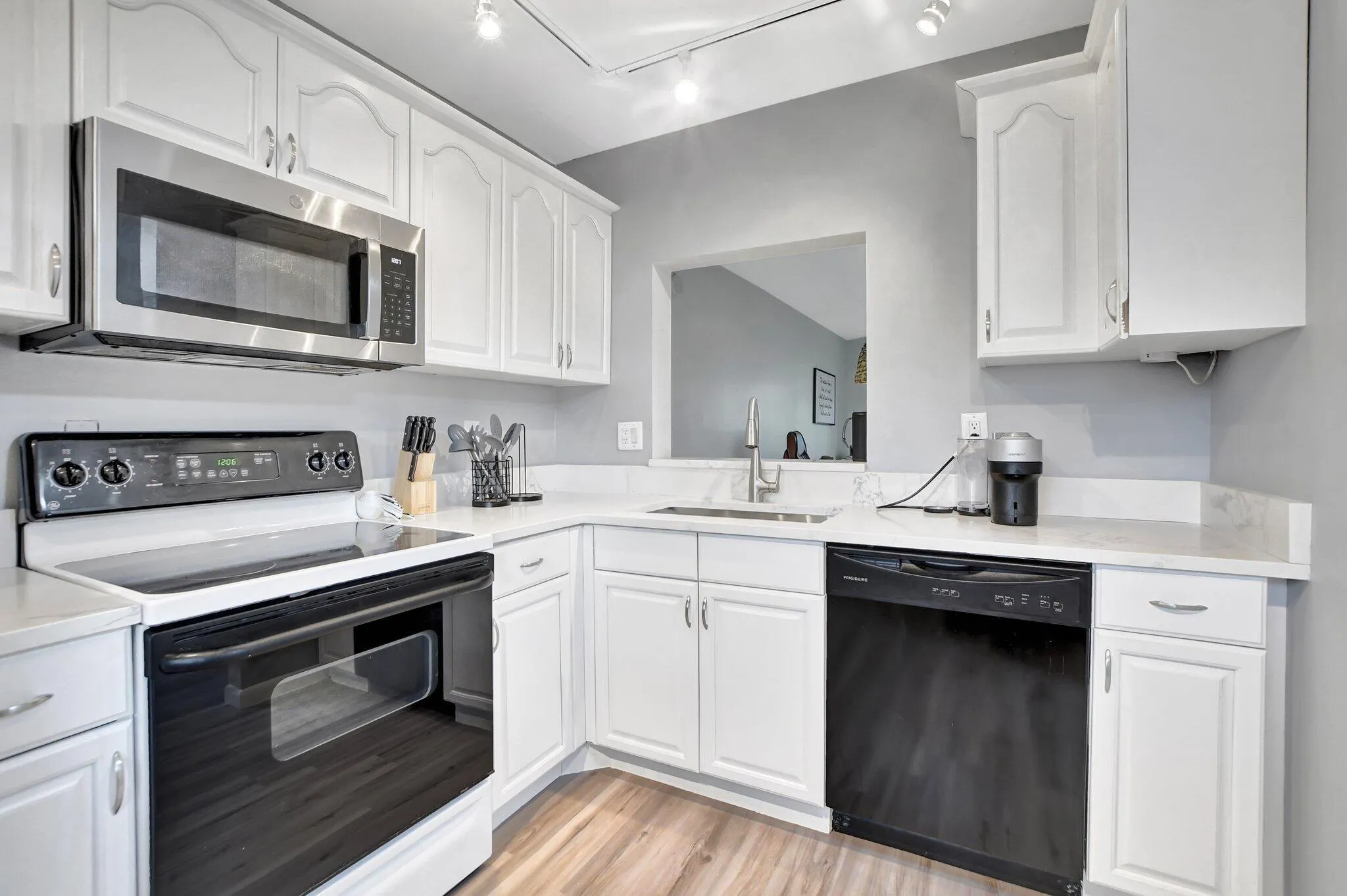 BRAND NEW ENTIRE A/C SYSTEM & NEW HOT WATER HEATER. 1st floor unit completely renovated in August 2022. In most desirable location across from the YMCA. New LVP floors and smooth ceilings throughout. Kitchen has refurbished cabinets, new quartz countertops, and SS appliances. Master bath has new quartz countertops, walk-in shower w/ glass door and toilet. Guest bath with new tub/shower combo, vanity and toilet. Reno included new lighting, trim, fans, mirrors, faucets and fixtures. Split floor plan with lake & garden views. Community has pool, tennis courts, clubhouse & onsite management office. This unit is a winner! Easy to show & quick closing. |
