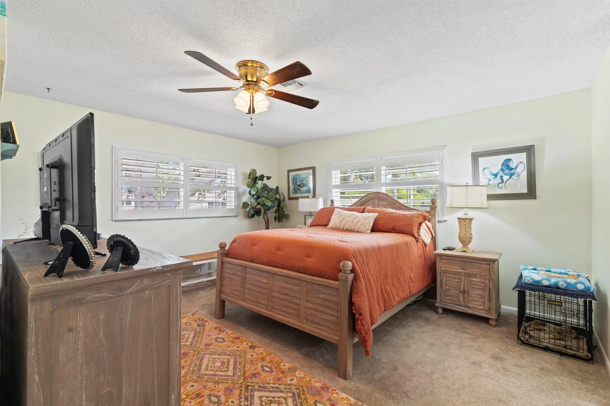 Waterfront, End Unit is immaculate! You're going to LOVE the open feeling of this unit. Updated kitchen with 42'' upper cabinets, Quartz Countertops, Soft Close doors & drawers, Stainless Steel appliances, dual trash pull out, Lazy Susan, Glass Subway Tiled backsplash & a massive kitchen island. Floors updated with beautiful waterproof Laminate in common areas with Carpet in both bedrooms. Both bathrooms have been completely updated with new showers, vanities, mirrors & light fixtures. Plantation shutters adorn both bedroom windows, front door has a new glass door with self storing screen feature. The entire unit has updated & custom light fixtures as well as recessed LED. Most units have all the porches on the rear side of bldg, this is on the side offering privacy & quiet = rare. |