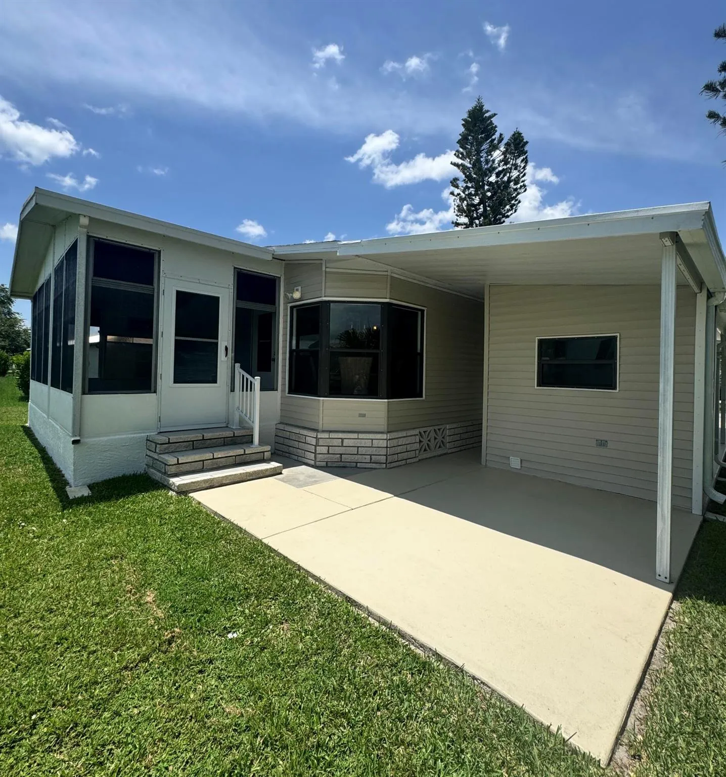 Adorable 2 bedroom 2 bath home in the desirable Spanish Lakes 55+ community. Home sits on a very quite cul de sac. Peaceful backyard. Home is immaculate and very well kept. Lovely screened in lanai with windows that close with A/C unit. Eat in kitchen with desk area. Refrigerator is 2024 newer appliances that are like brand new. Bathrooms have upgraded Toto brand toilets that are ADA compliant. Roof has been resealed. A/C is 2019 and has been serviced annually. Ceiling fans in every room for added comfort. Driveway and home have been freshly painted. Brick skirting around entire home. Lawn care and trash removal included in lot rent as well as an 18 hole golf course. 2 pools, tennis, pickleball, bocce ball, shuffle board. club house and much more. |