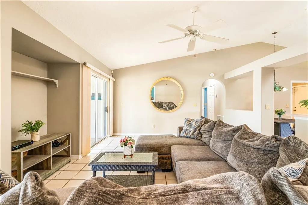 Stylish home tucked amidst vibrant tropical landscapes, blends picturesque charm w/chic coastal living. Inside, exciting architecture shines: soaring vaulted ceilings, decorative plant shelves, & arched windows bathe spaces in natural light. Generous eat-in kitchen w/breakfast bar is the heart of the home. Separate living & family rms offer ideal versatility, perfect for spreading out or a dedicated office. Unwind in the master w/relaxing tub & dual vanities. Your covered patio overlooks the screened pool ideal for sun-drenched days. Fenced bkyd & patio are ready for memorable firepit nights. |
