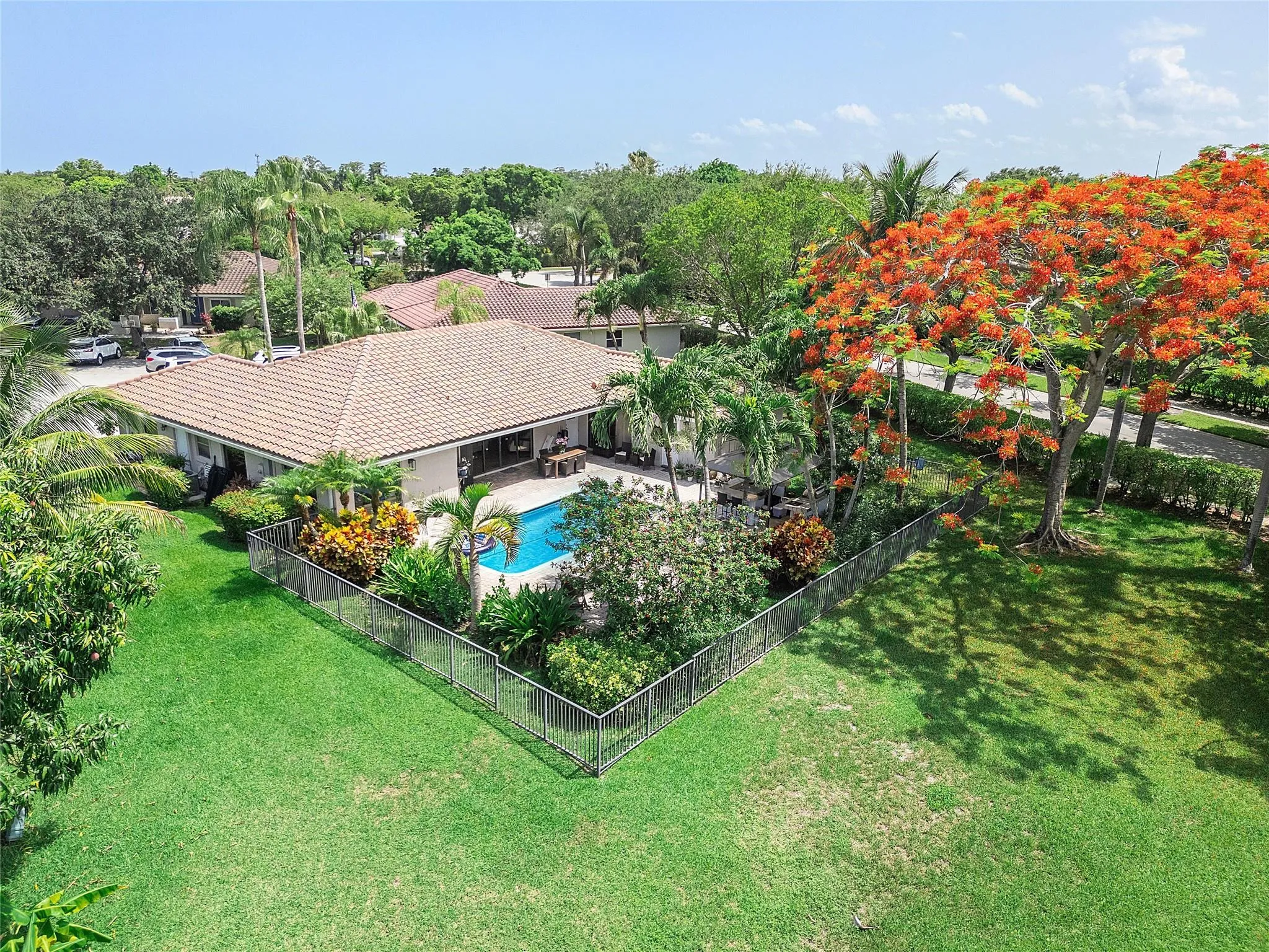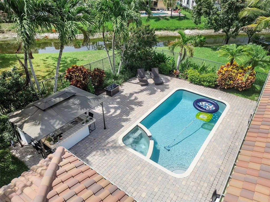 **WONDERFUL** 4 bedroom, 2 bath, 1-story pool home **ON WATER** with 2-car garage, **OVERSIZED 17,000+ square foot lot** and **AMAZING BACKYARD OASIS** on a quiet double **CUL-DE-SAC!** This open floor plan features a cherry wood kitchen, granite counter tops, stainless steel appliances, large bedrooms, 2 cabana baths, separate laundry room, beautiful neutral tile flooring throughout, lush landscaping, pavered pool deck with covered seating, & covered outdoor bar area with fridge, electric, & brand new built-in grill! Roof: 2015, A/C: 2024, Hot water heater: 2021, & new electric panel: 2022. Walking distance to A-rated Park Springs Elementary, Volunteer Park, & Fern Glen Park. Plenty of shopping & dining nearby with Target, Walmart, & the Coconut Creek Promenade close by. Your dream home!! |